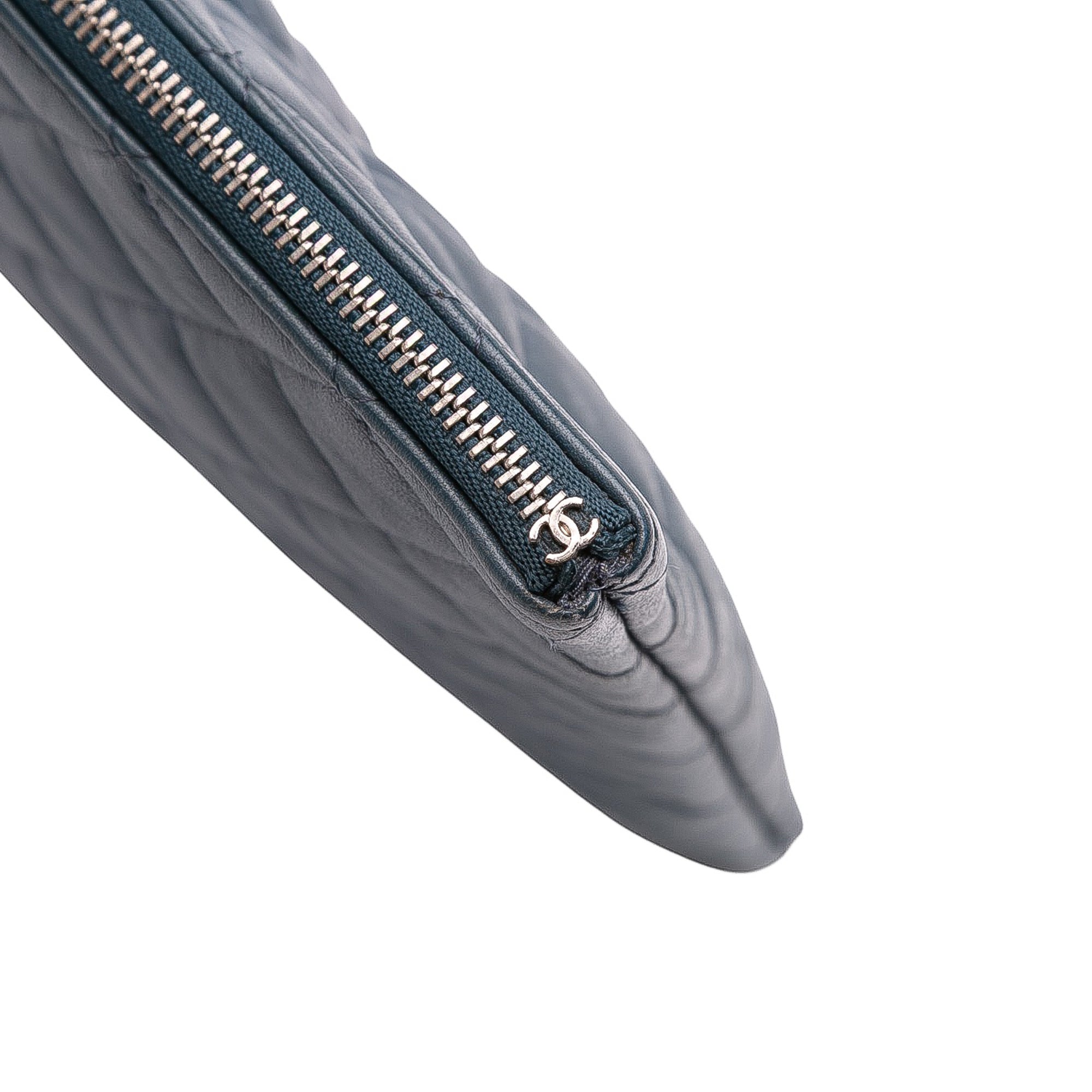 Blue Chanel Large Quilted Lambskin O Case Clutch