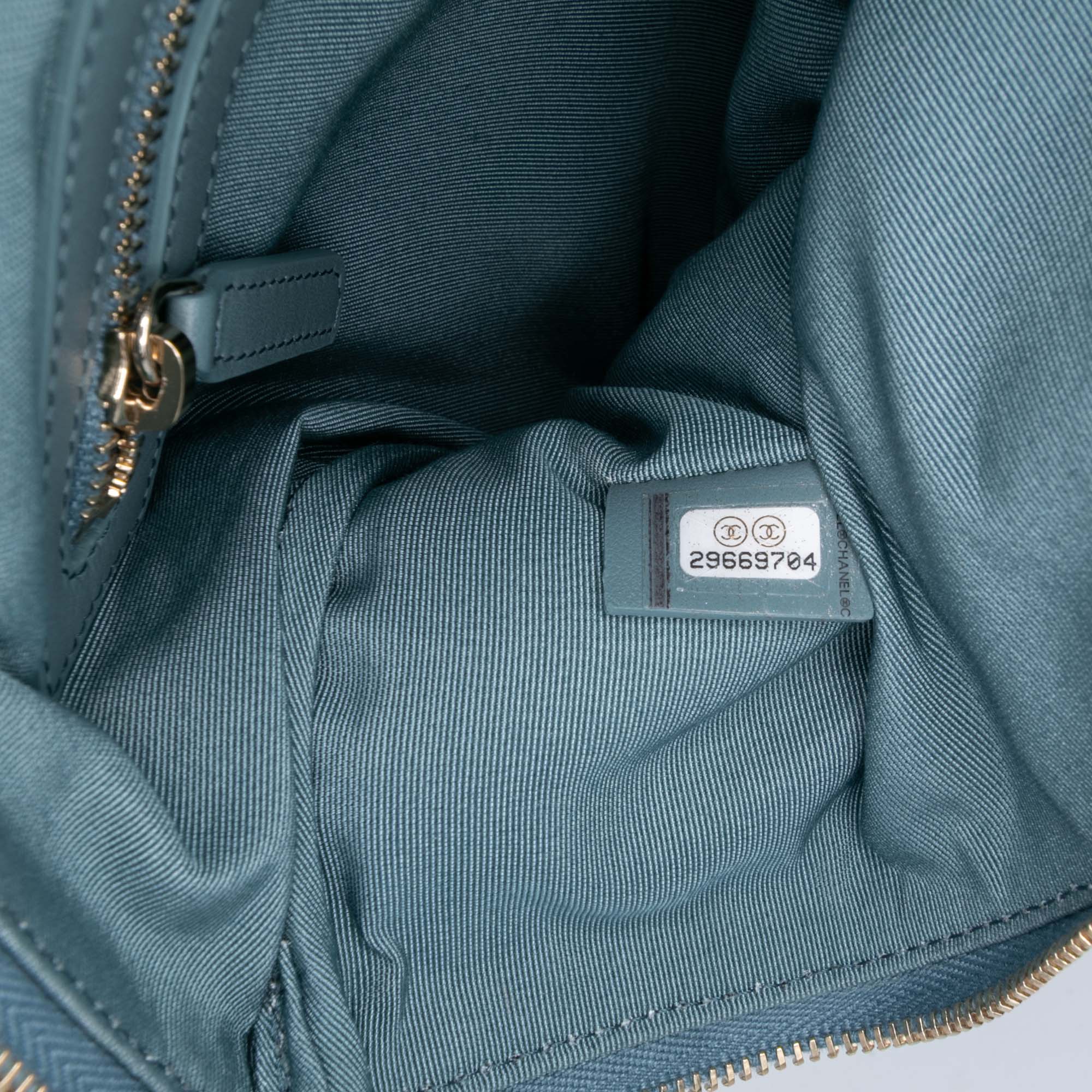Product Details: Blue Chanel Medium Tweed Deauville O Case Clutch. The Deauville O Case clutch bag features a tweed body and a top zip closure. 7.9" L x 11" W x 0.8" D. Serial number 29669704.