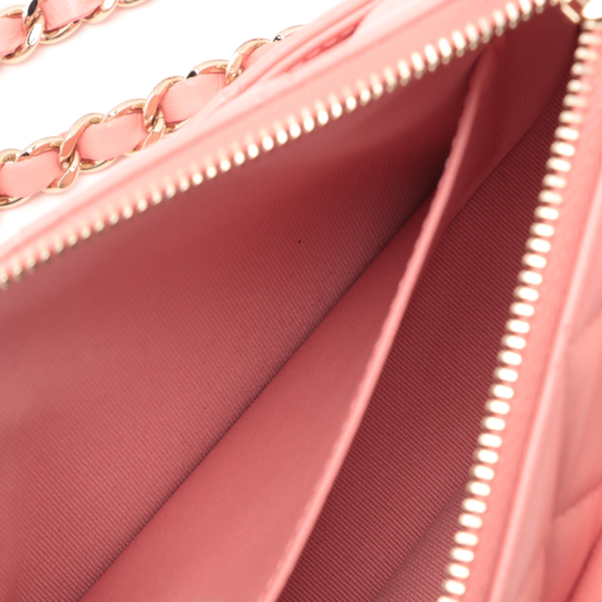 Pink Chanel Small Quilted Lambskin Clutch with Chain Shoulder Bag