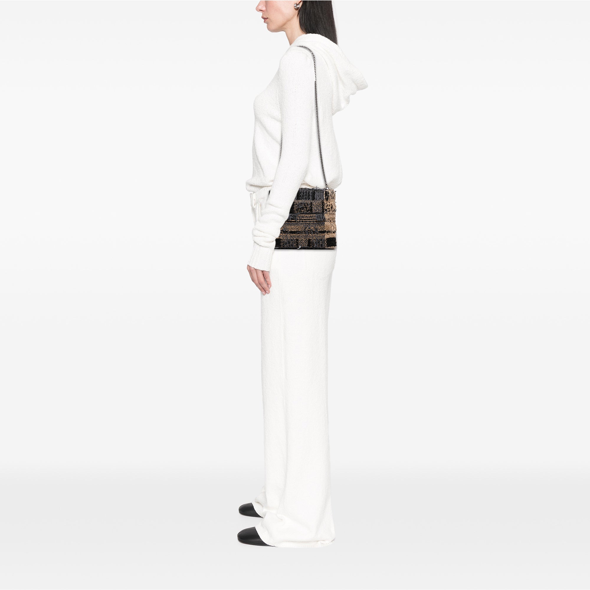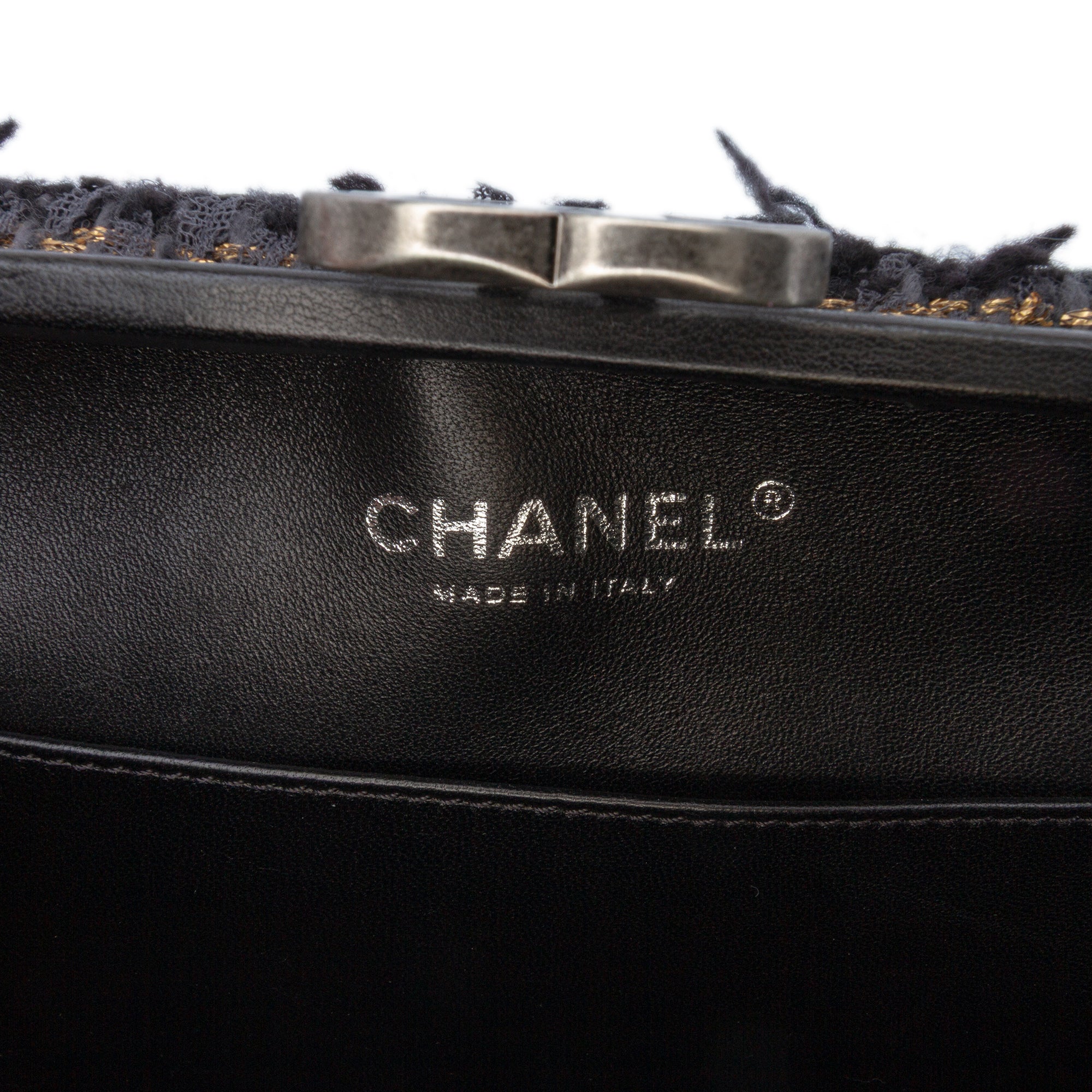 Product Details: Black Chanel Multicolor Tweed Quadrato Box Crossbody Bag. This shoulder bag features tweed and lambskin leather body, a silver-tone chain strap, CC clasp top closure, and an interior patch pocket. 7.1" L x 8.7" W x 3.1" D. Serial number 23076440.
