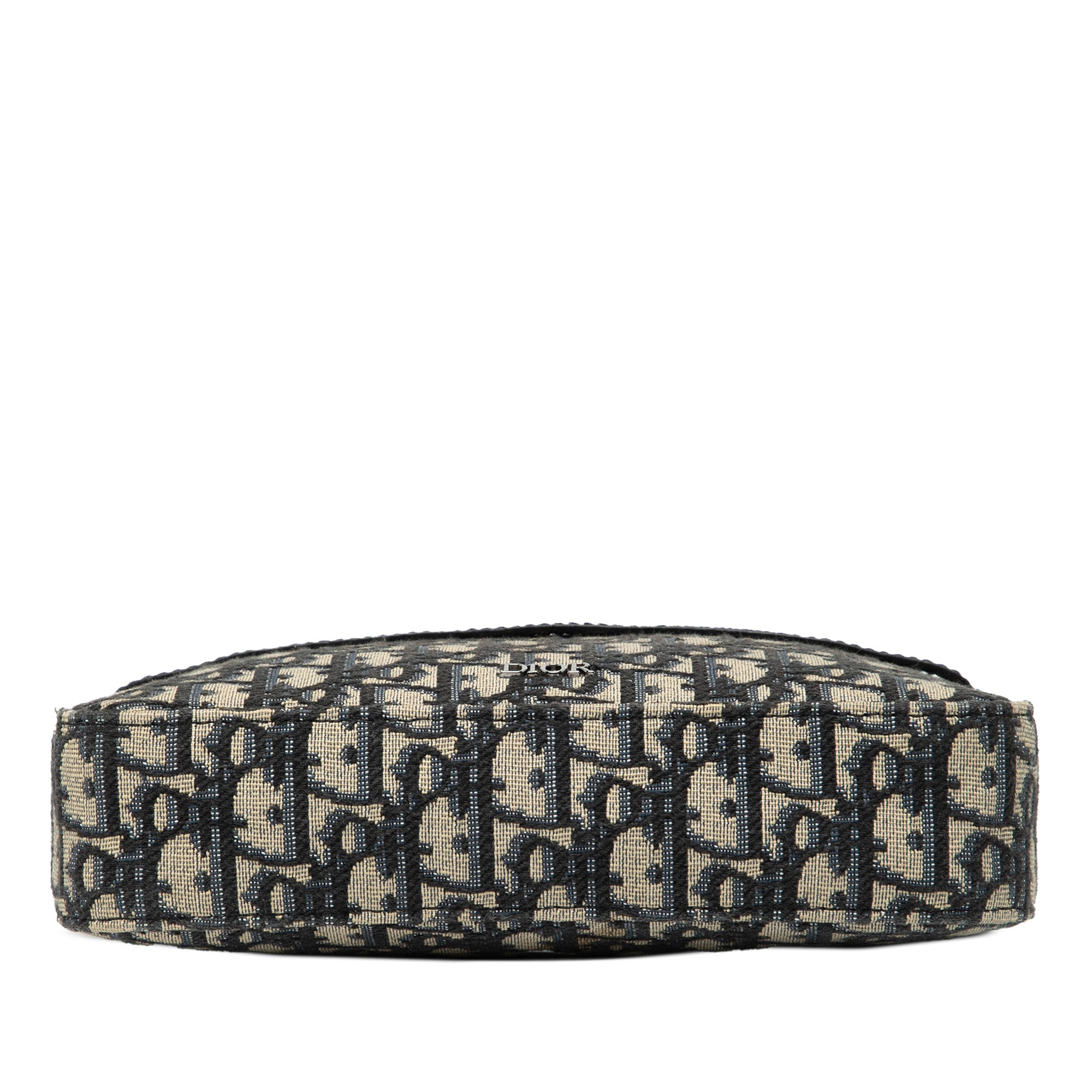 Product Details: Blue Dior Oblique Canvas Safari Crossbody. This crossbody bag features a canvas body with leather trim, a flat leather strap, a top zip closure, and an exterior front zip pocket. 5.7" L x 8.7" W x 2" D. Serial number 23-BO-0292.