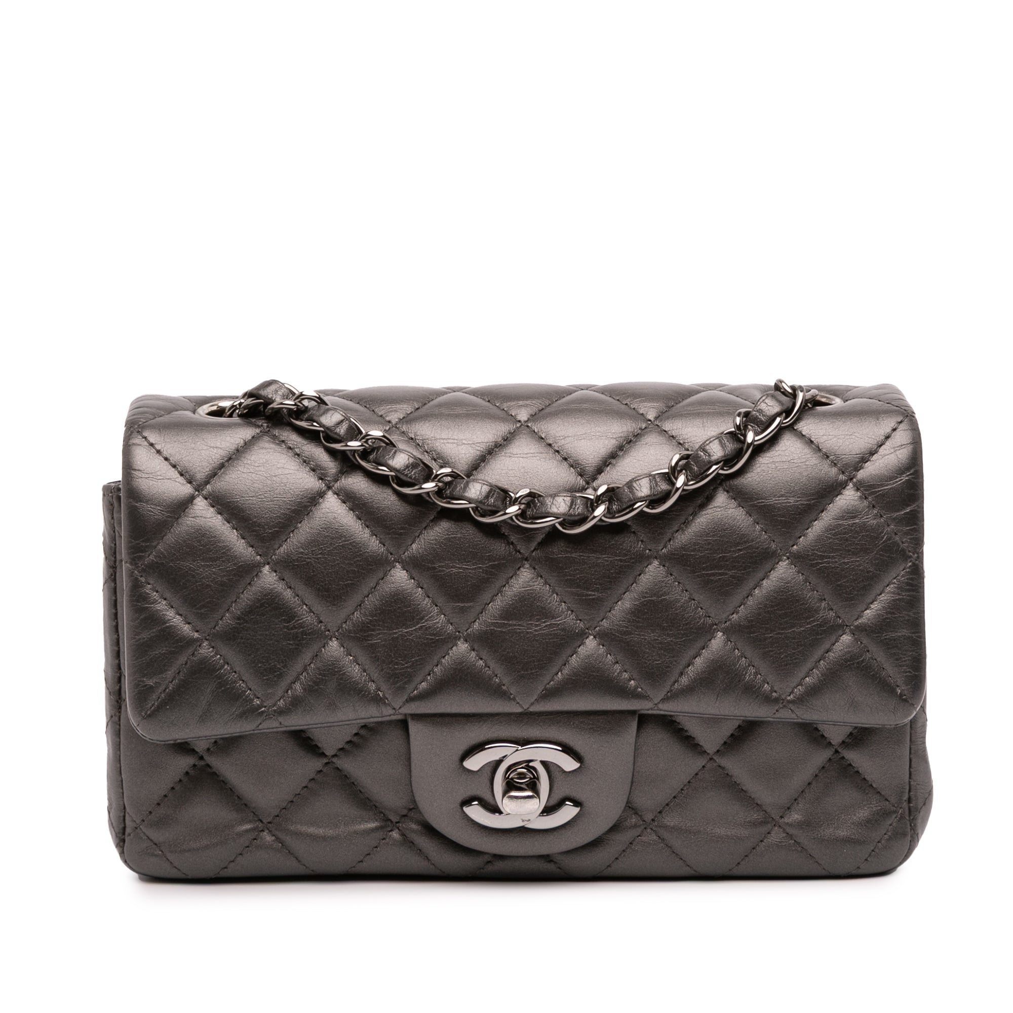 Gray Chanel Mini Rectangular Classic Metallic Lambskin Single Flap Crossbody Bag