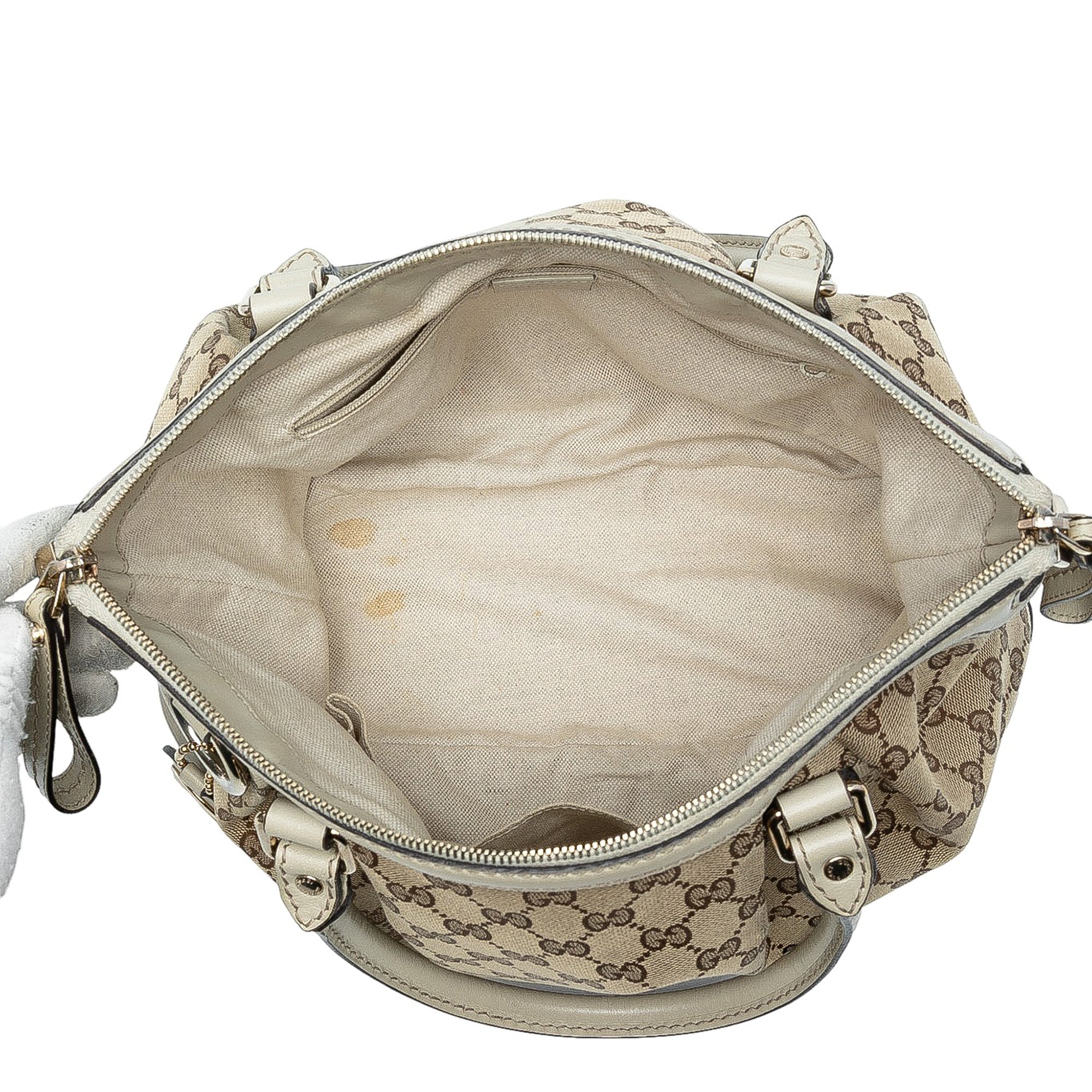 Please note this is a pre-owned item that may display signs of wear consistent with the condition listed above and shown in photos. Designer Revival guarantees this is an authentic Beige Gucci GG Canvas Sukey Satchel or 100% of your money back. Learn more about our authentication process.