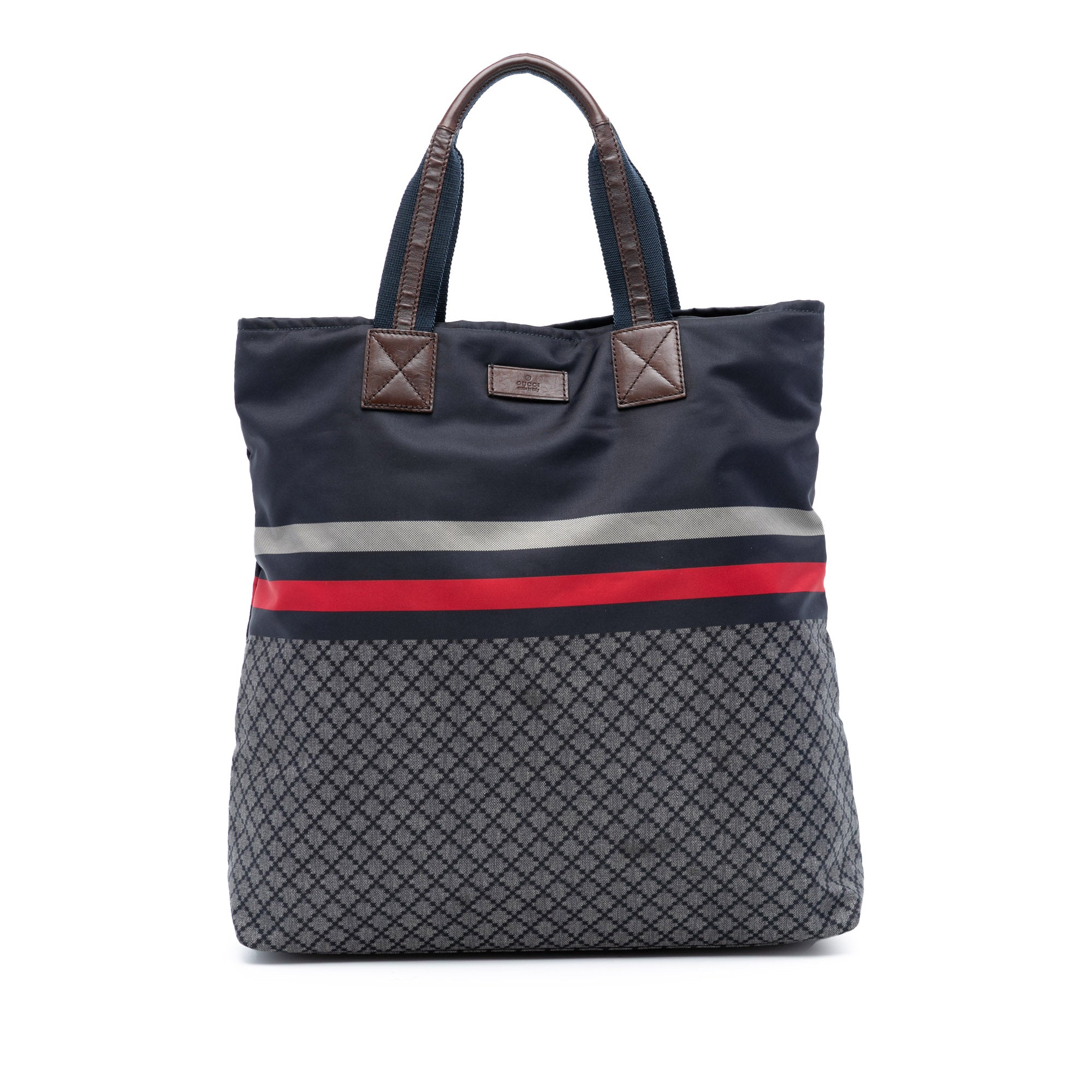 Please note this is a pre-owned item that may display signs of wear consistent with the condition listed above and shown in photos. Designer Revival guarantees this is an authentic Blue Gucci Diamante Web Nylon Tote or 100% of your money back. Learn more about our authentication process.