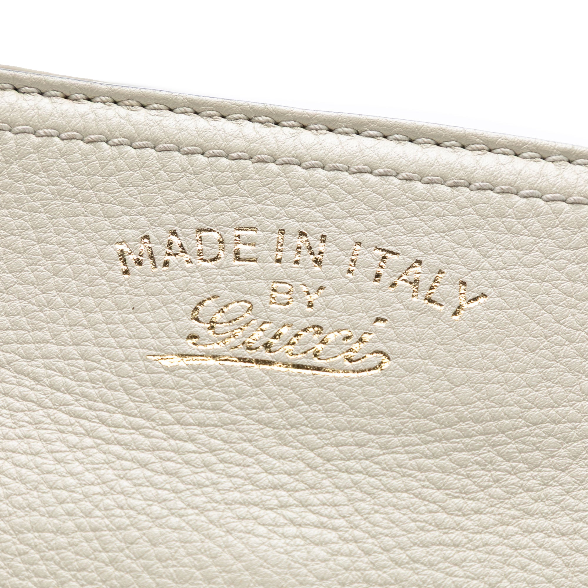 Product Details: White Gucci Medium Calfskin Bamboo Shopper Satchel. The Bamboo Shopper features a leather body, bamboo top handles, a detachable flat leather strap, an open top with magnetic snap closure, and interior zip and slip pockets. 8.7" L x 13.2" W x 5.3" D, 3.5" drop. Serial number 323660 520981.