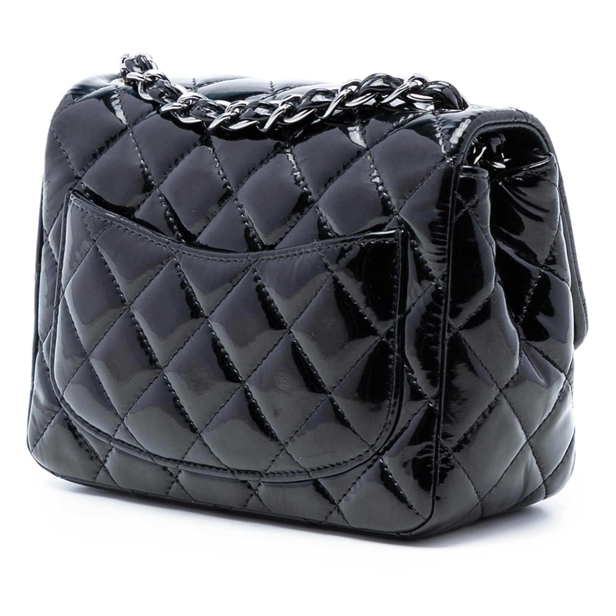 Black Chanel Mini Square Classic Patent Single Flap Crossbody Bag