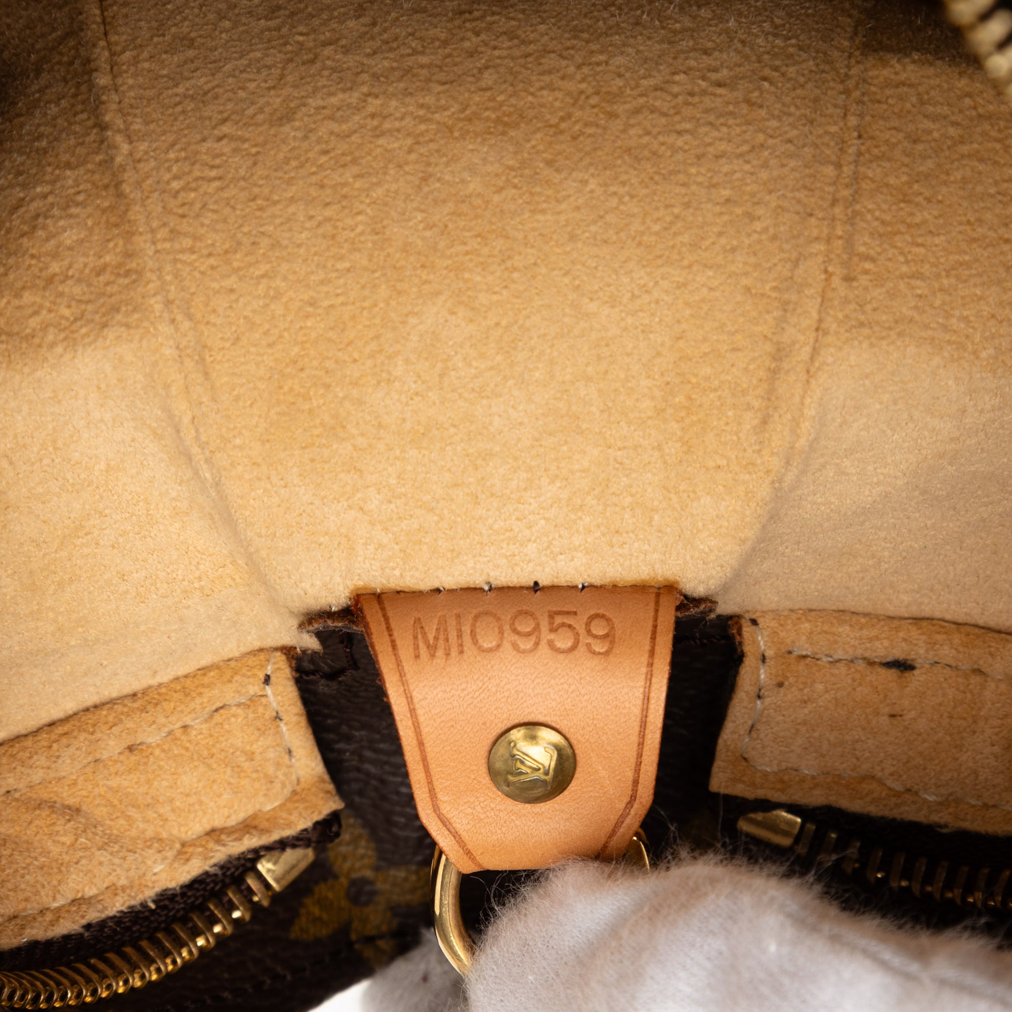 Product Details: Brown Louis Vuitton Monogram Looping GM Shoulder Bag. The Looping GM features a monogram canvas body, a rolled vachetta leather shoulder strap, a top zip closure, and interior zip and slip pockets. 11.8" L x 11" W x 3.9" D. Serial number MI0959.