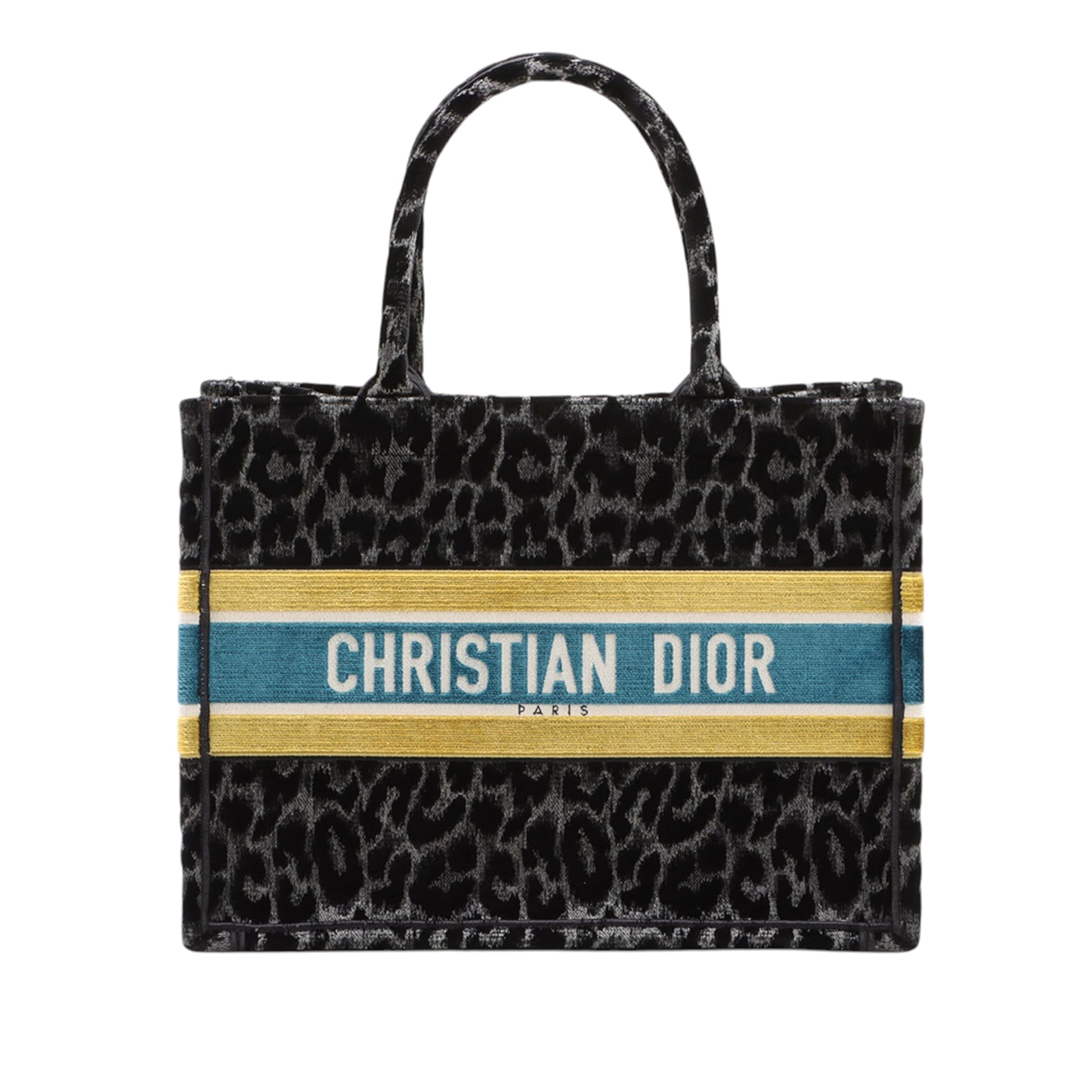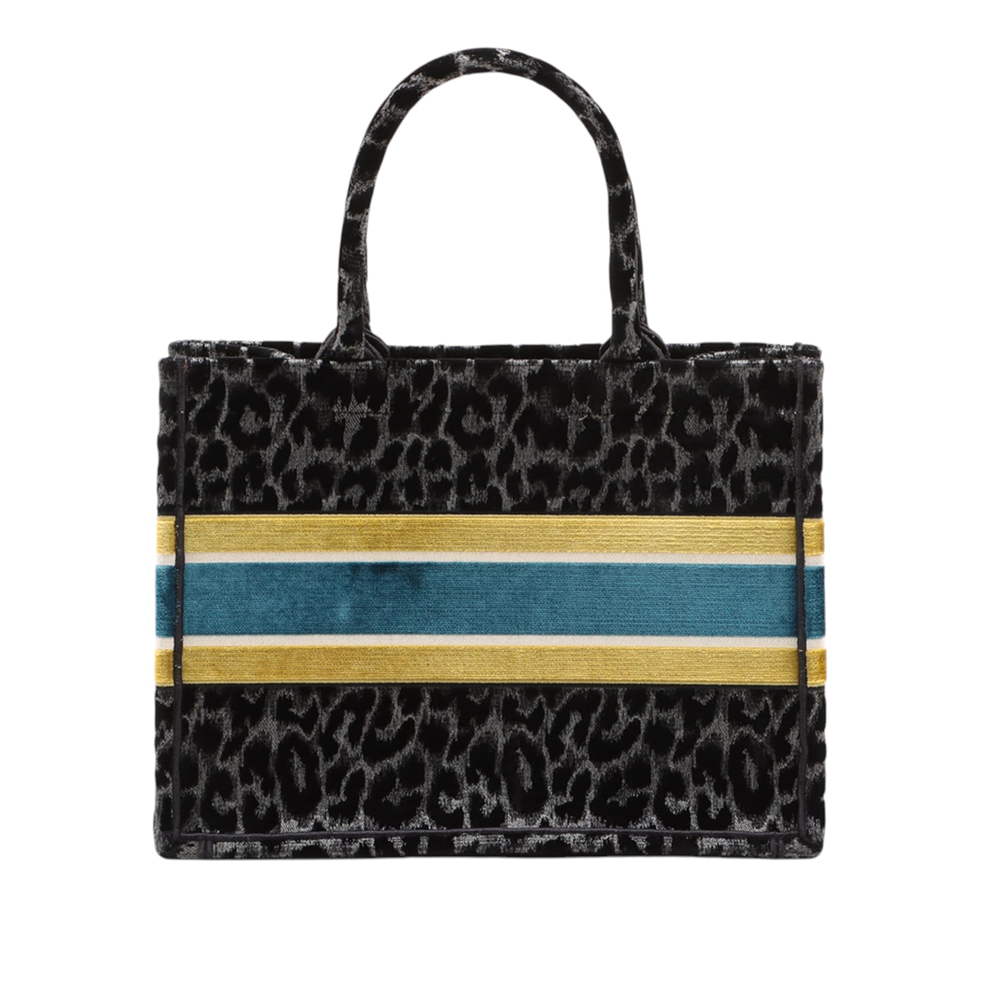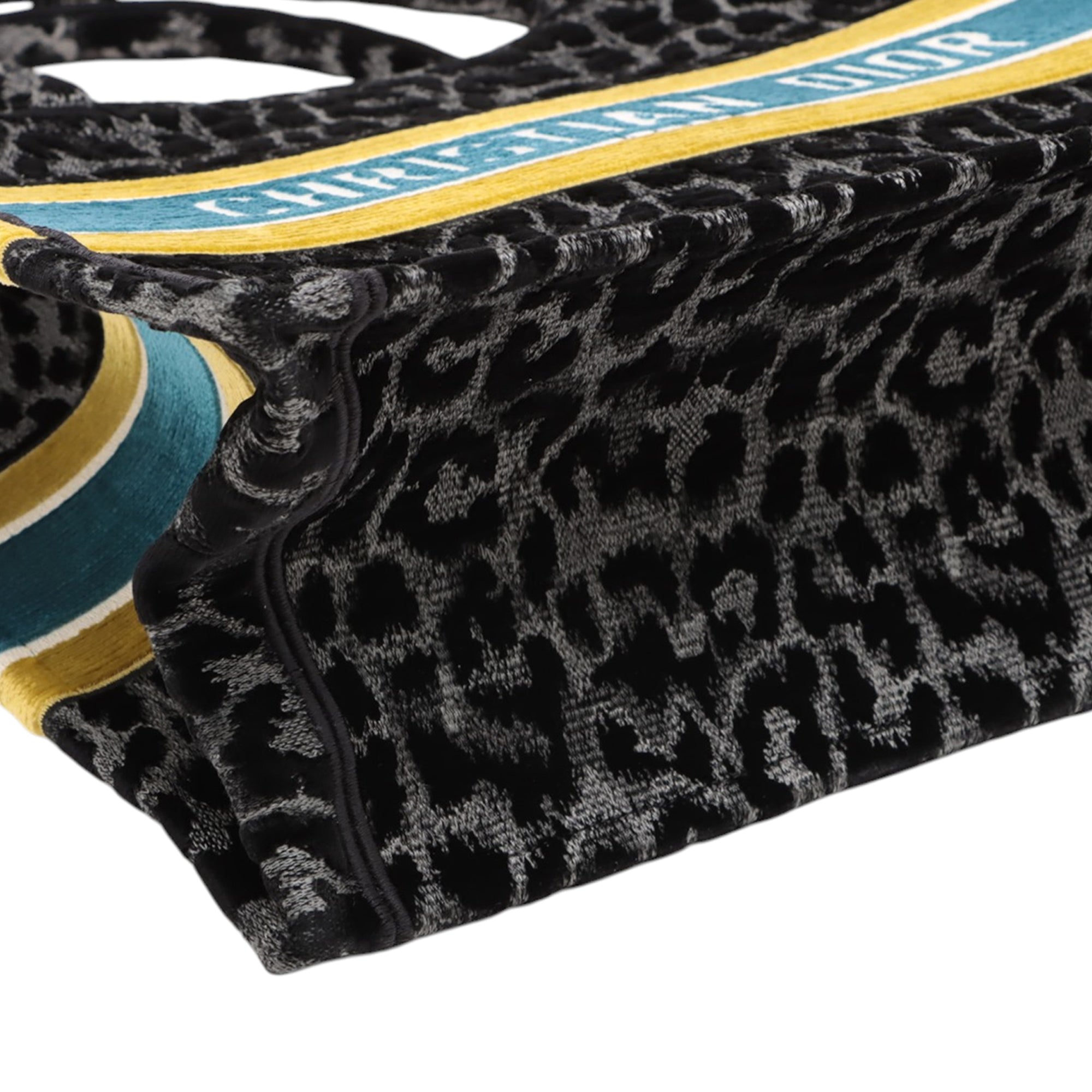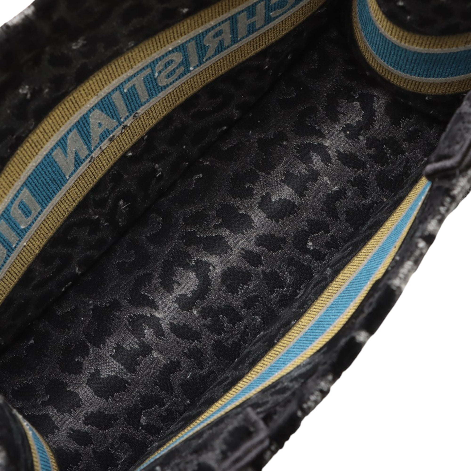 Black Dior Mizza Medium Embroidered Velvet Leopard Book Tote
