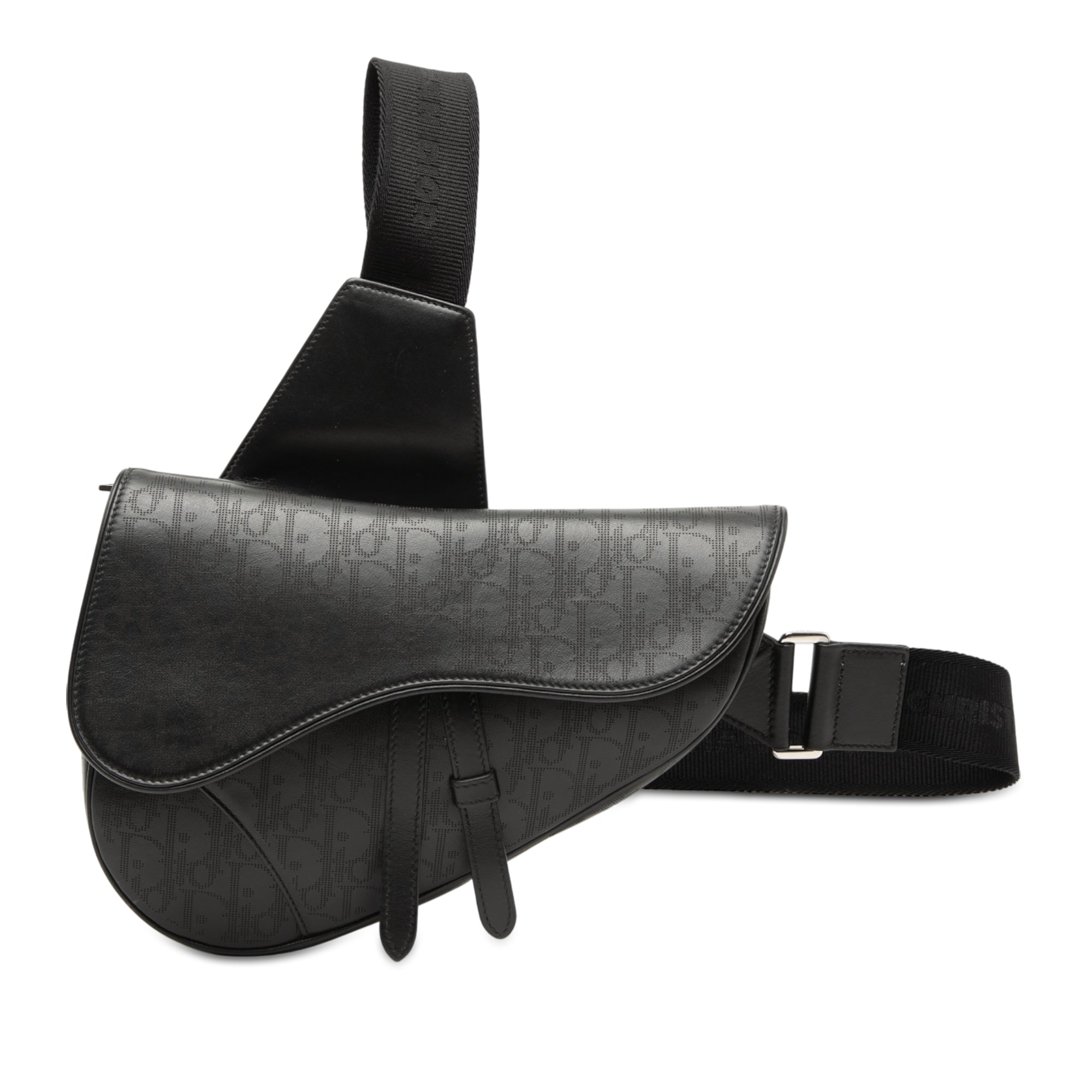 Black Dior Oblique Perforated Calfskin Galaxy Saddle Bag