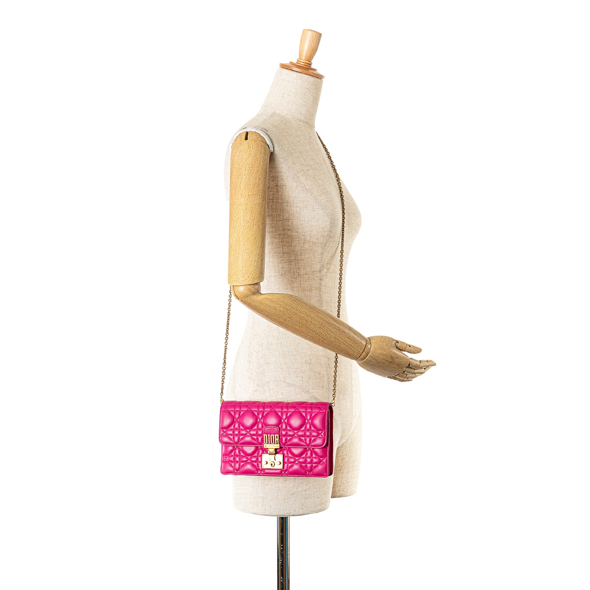 Pink Dior Lambskin Cannage DiorAddict Wallet on Chain Crossbody Bag