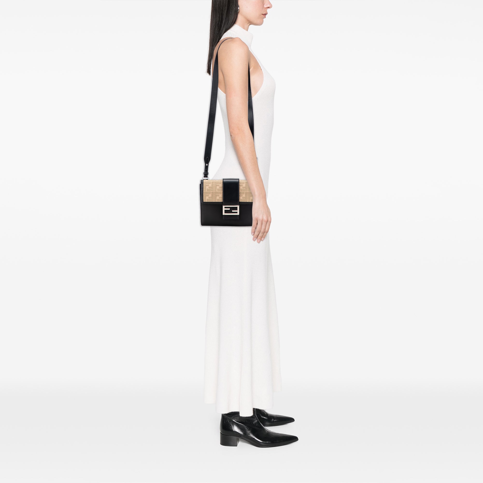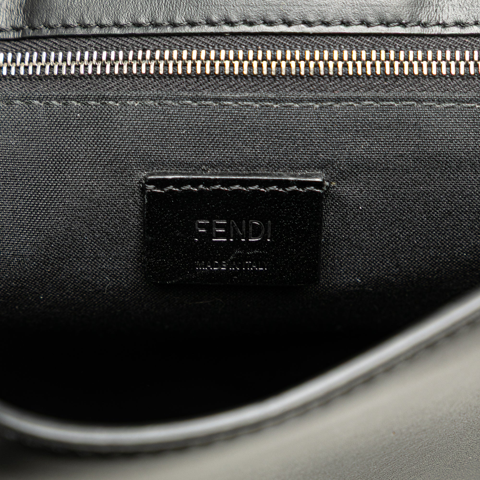 Black Fendi Calfskin and Canvas FF 1974 Flat Baguette Crossbody