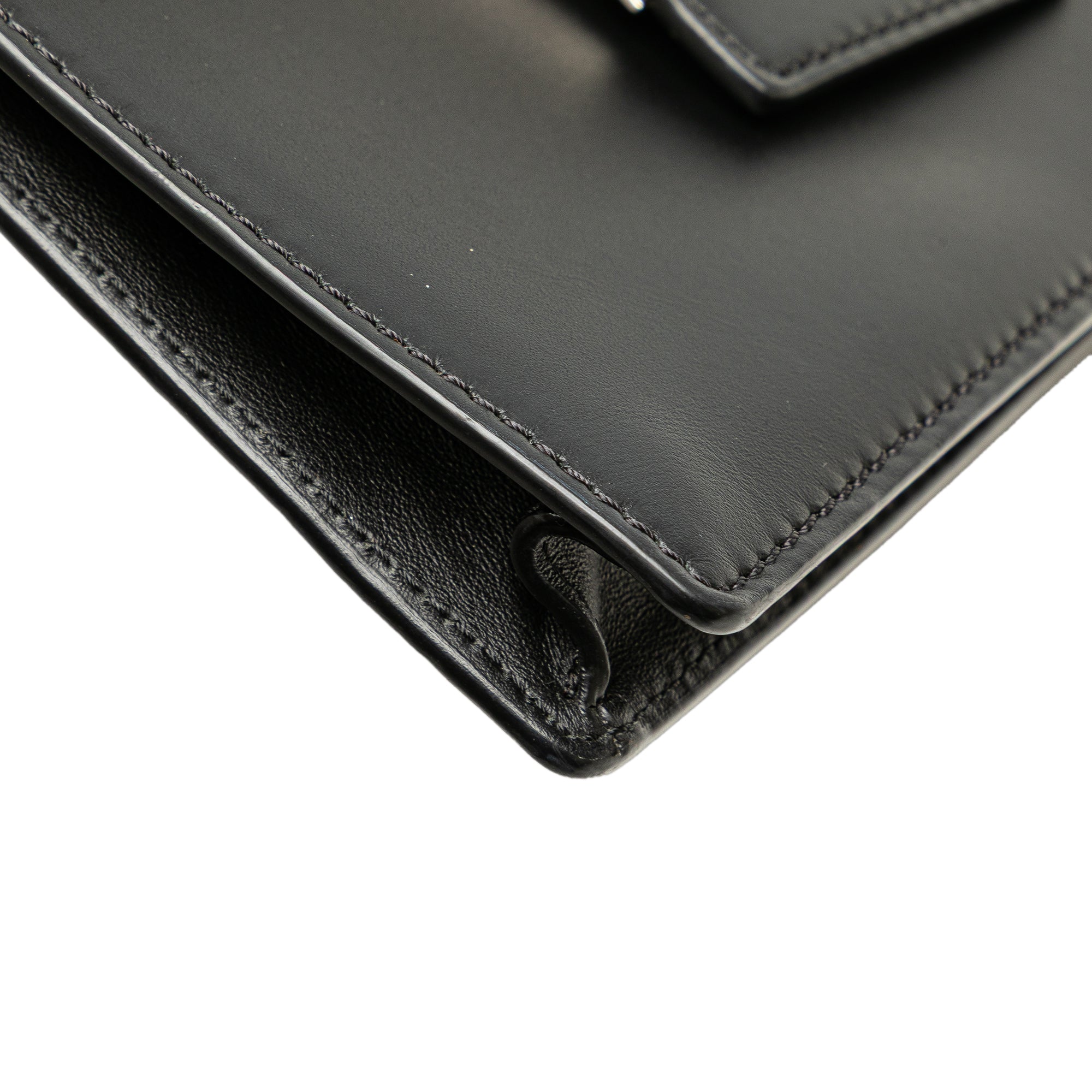 Product Details: Black Fendi Calfskin and Canvas FF 1974 Flat Baguette Crossbody. This crossbody bag features a leather and canvas body, a flat leather shoulder strap, a front flap with snap closure, and an interior zip pocket. 6.3" L x 8.7" W x 0.8" D. Serial number 7VA524 A9P6 218 8241.