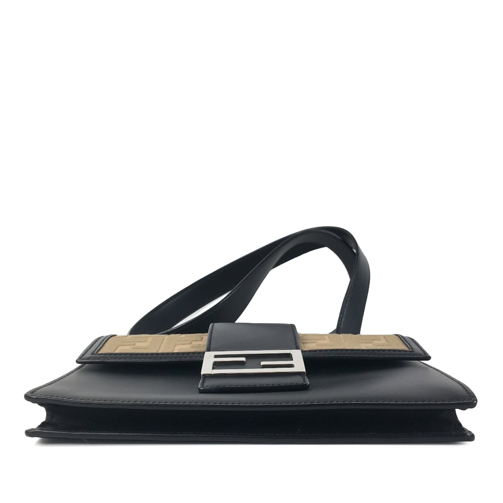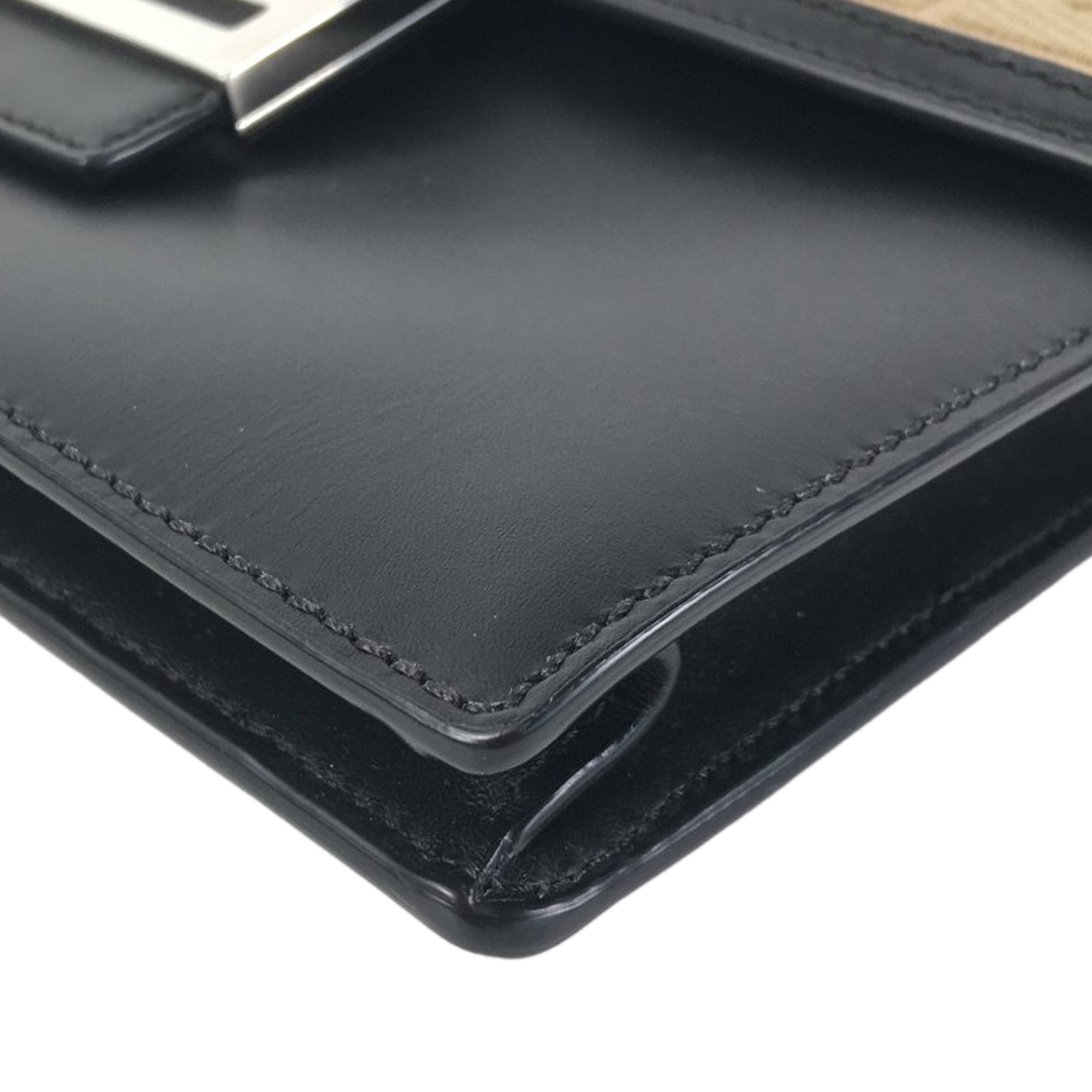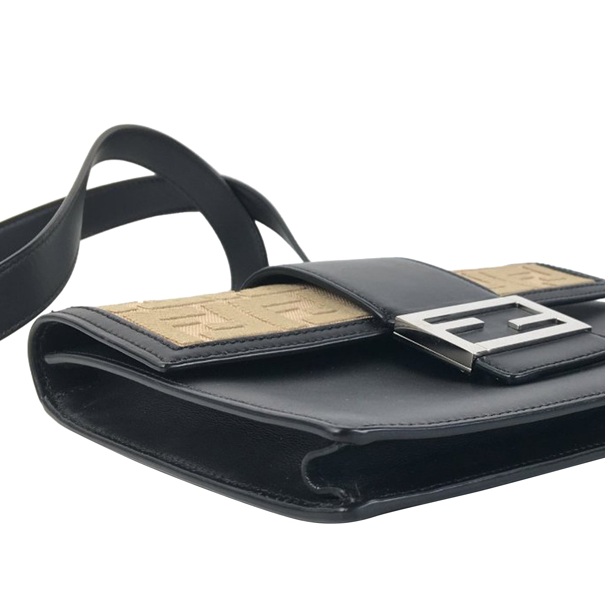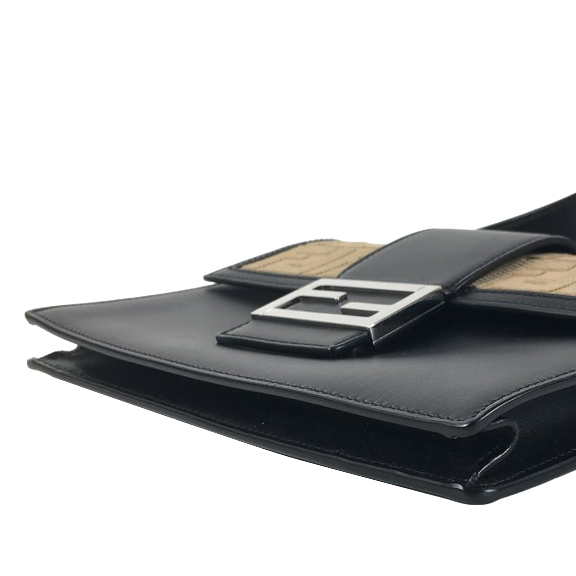 Black Fendi Calfskin and Canvas FF 1974 Flat Baguette Crossbody