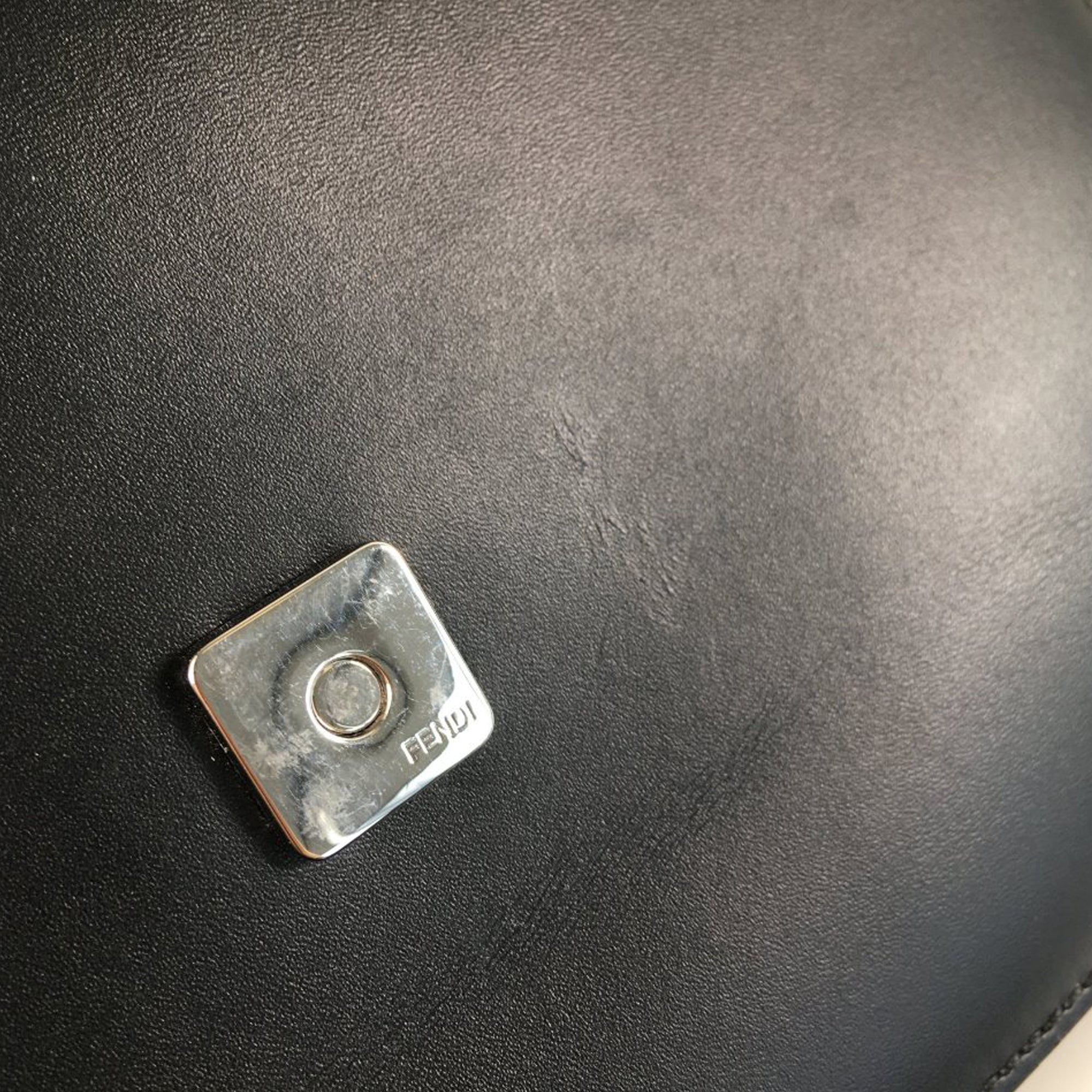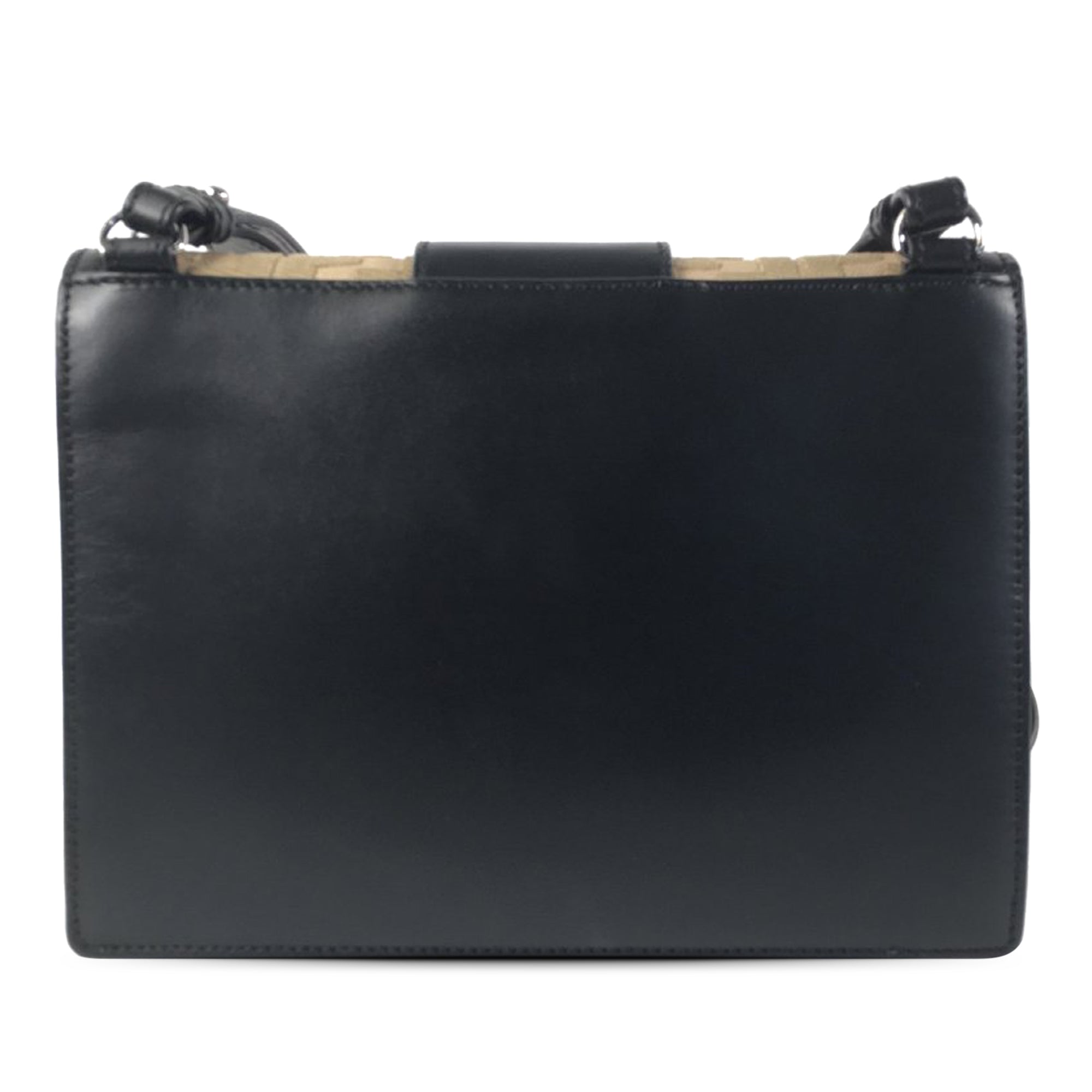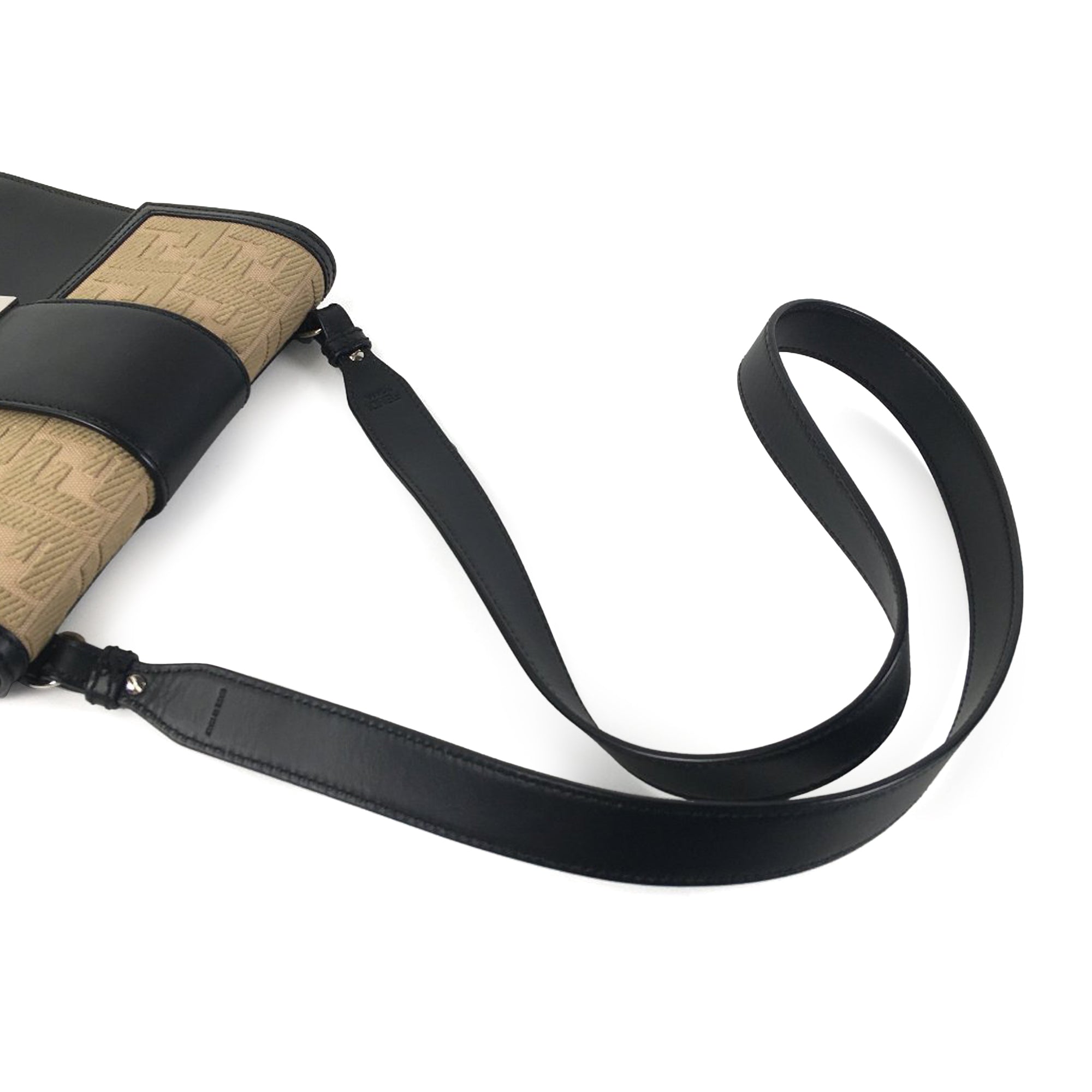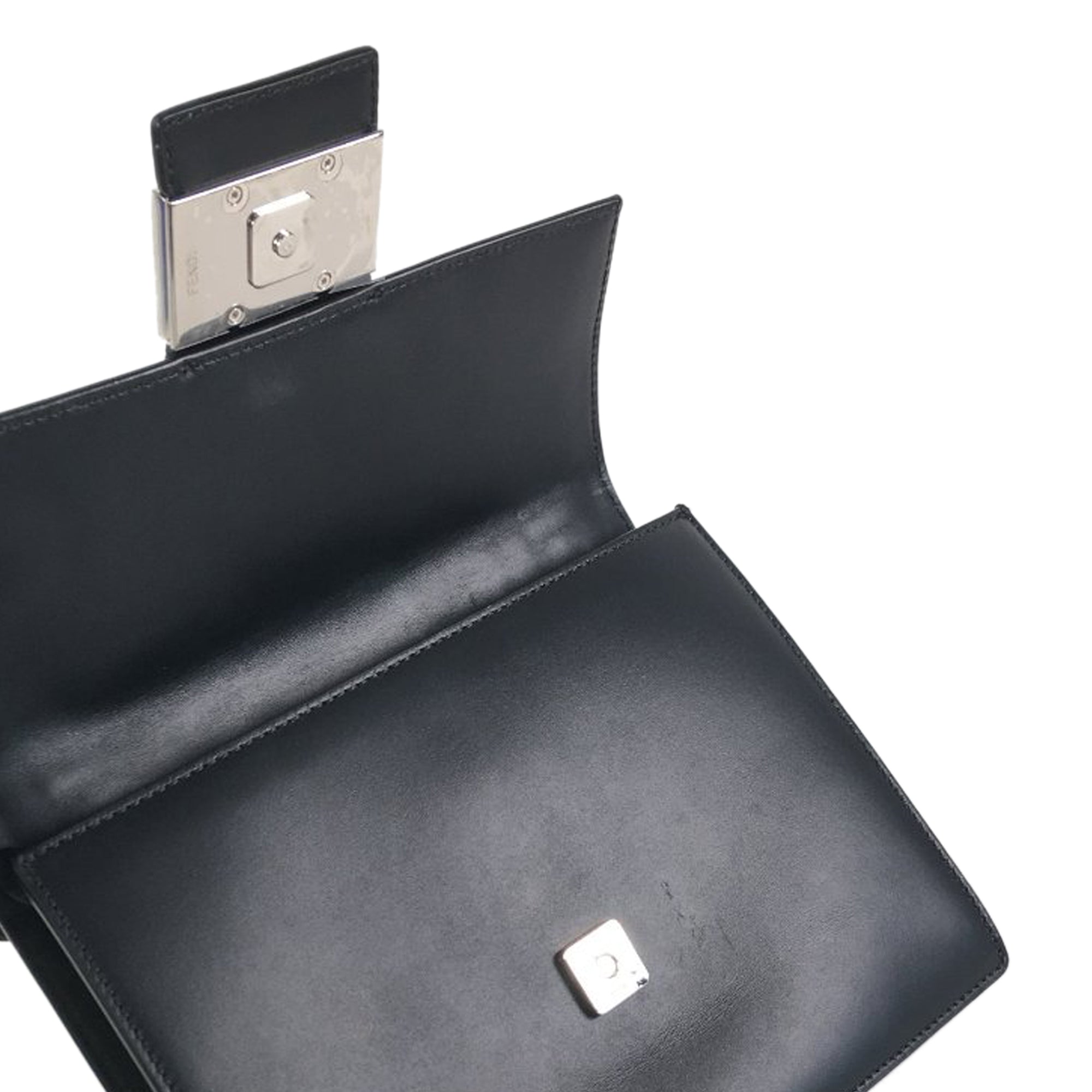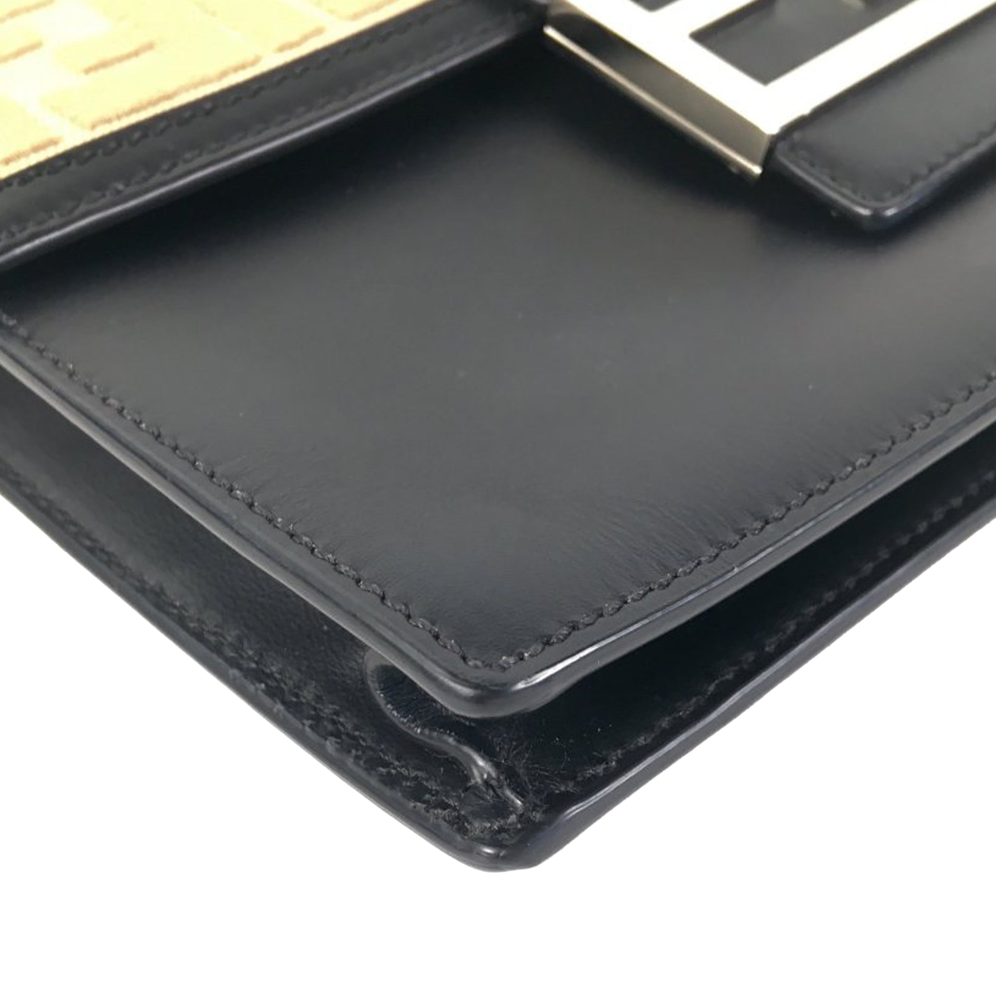 Black Fendi Calfskin and Canvas FF 1974 Flat Baguette Crossbody