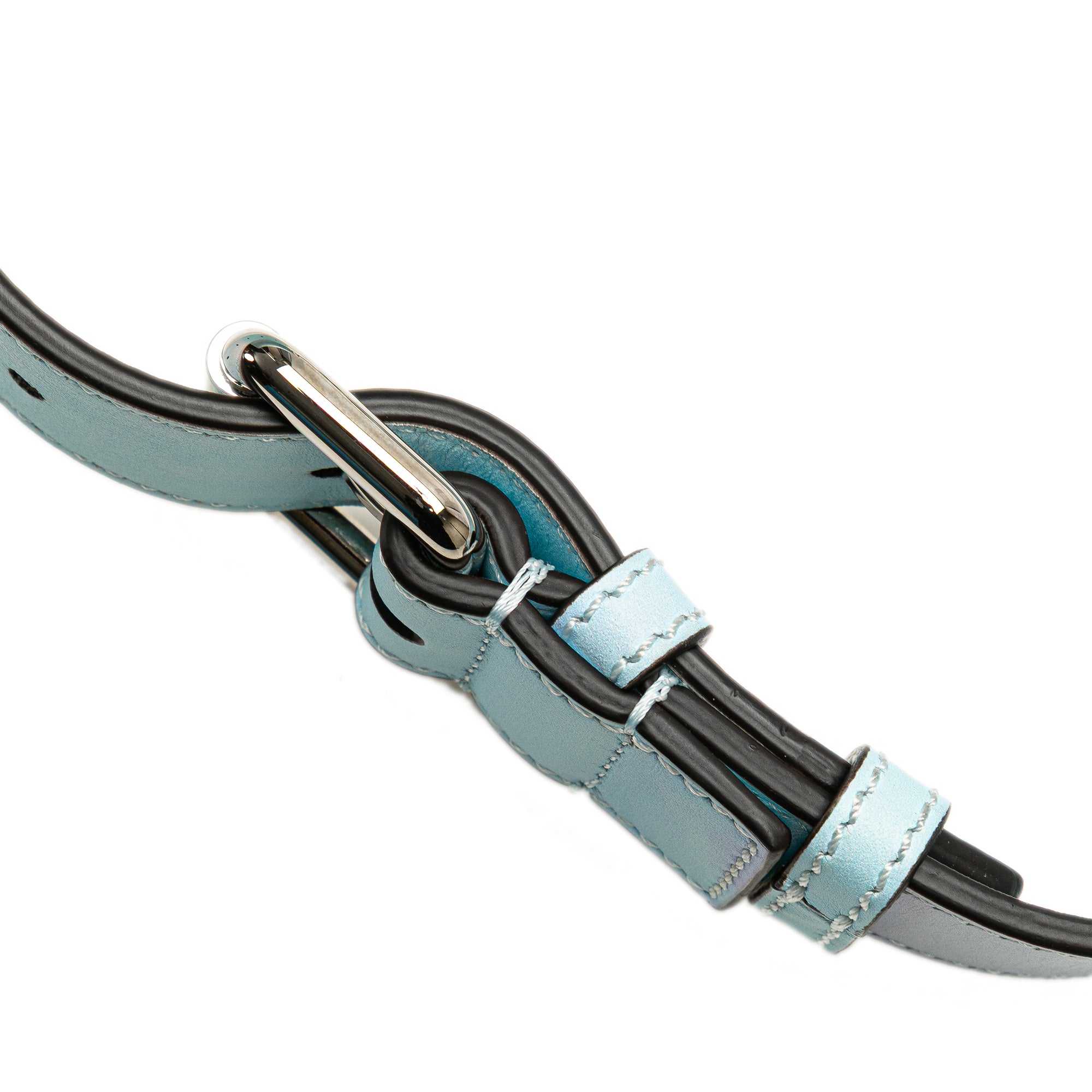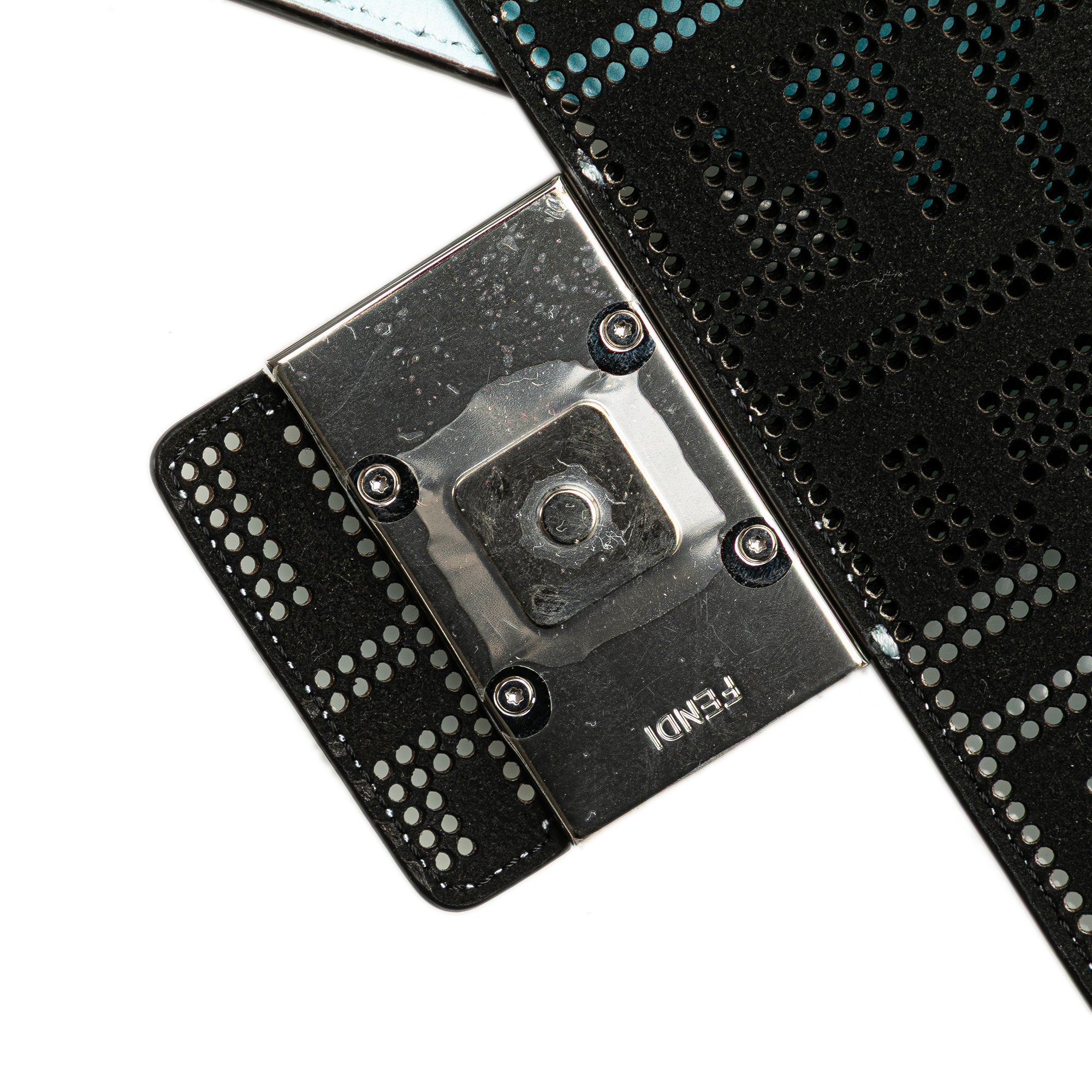 Blue Fendi Medium Zucca Perforated Leather Baguette Messenger Bag - Designer Revival Blue Fendi Medium Zucca Perforated Leather Baguette Messenger Bag - Designer Revival