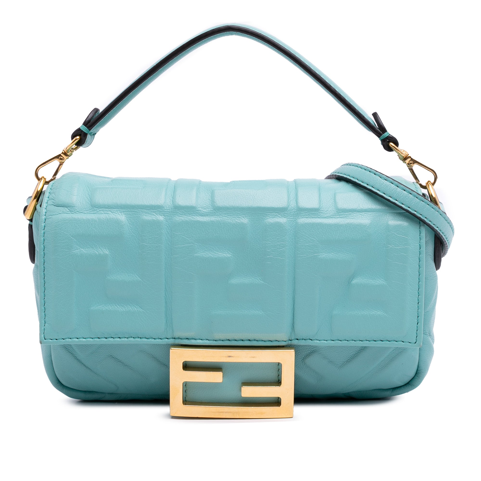 Please note this is a pre-owned item that may display signs of wear consistent with the condition listed above and shown in photos. Designer Revival guarantees this is an authentic Blue Fendi Mini Zucca Embossed Leather Baguette Satchel or 100% of your money back. Learn more about our authentication process.