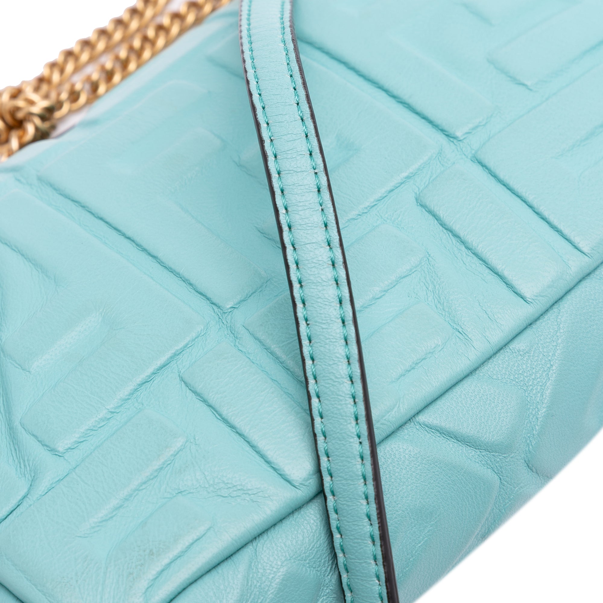 Blue Fendi Mini Zucca Embossed Leather Baguette Satchel