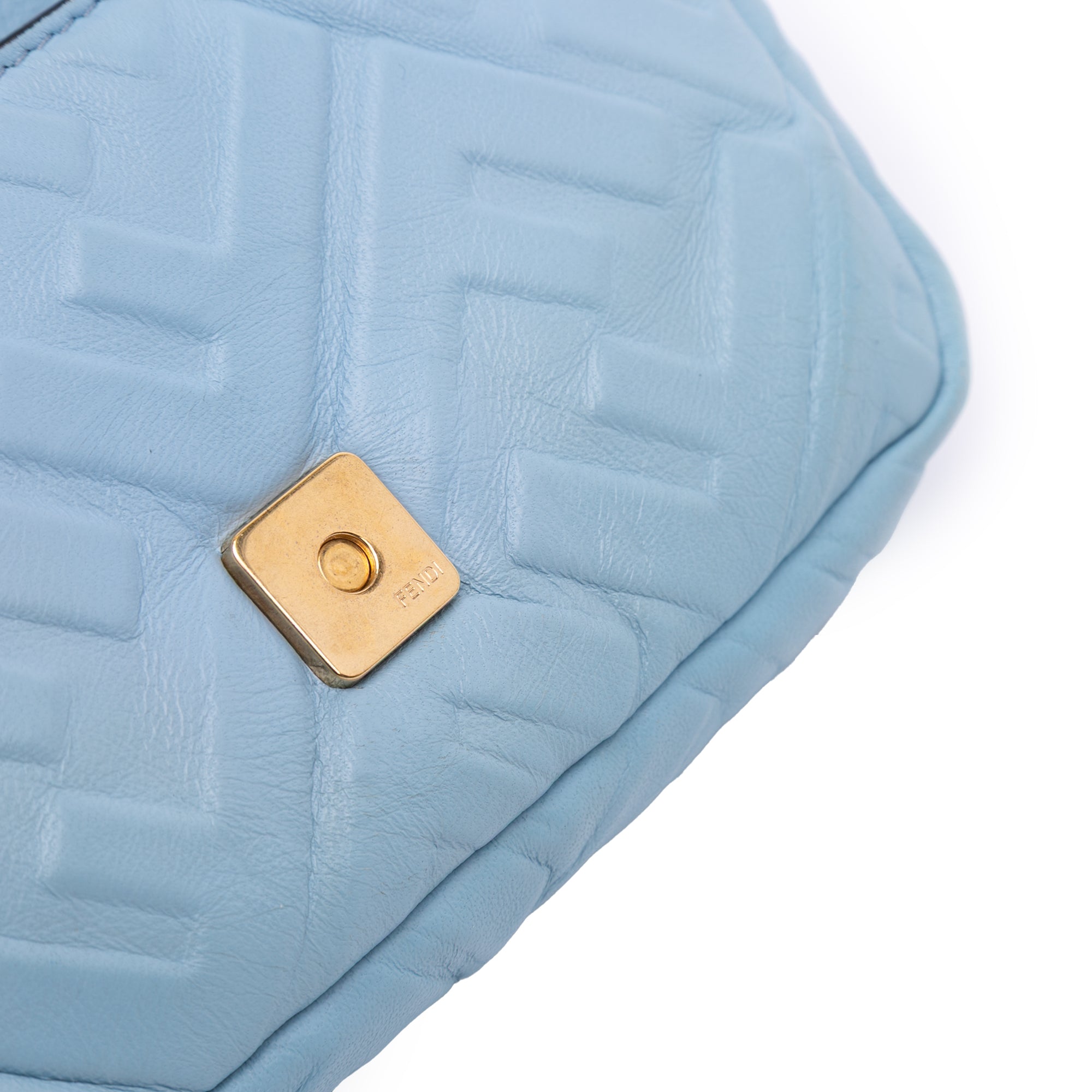 Blue Fendi Mini Zucca Embossed Leather Baguette Satchel - Designer Revival Blue Fendi Mini Zucca Embossed Leather Baguette Satchel - Designer Revival