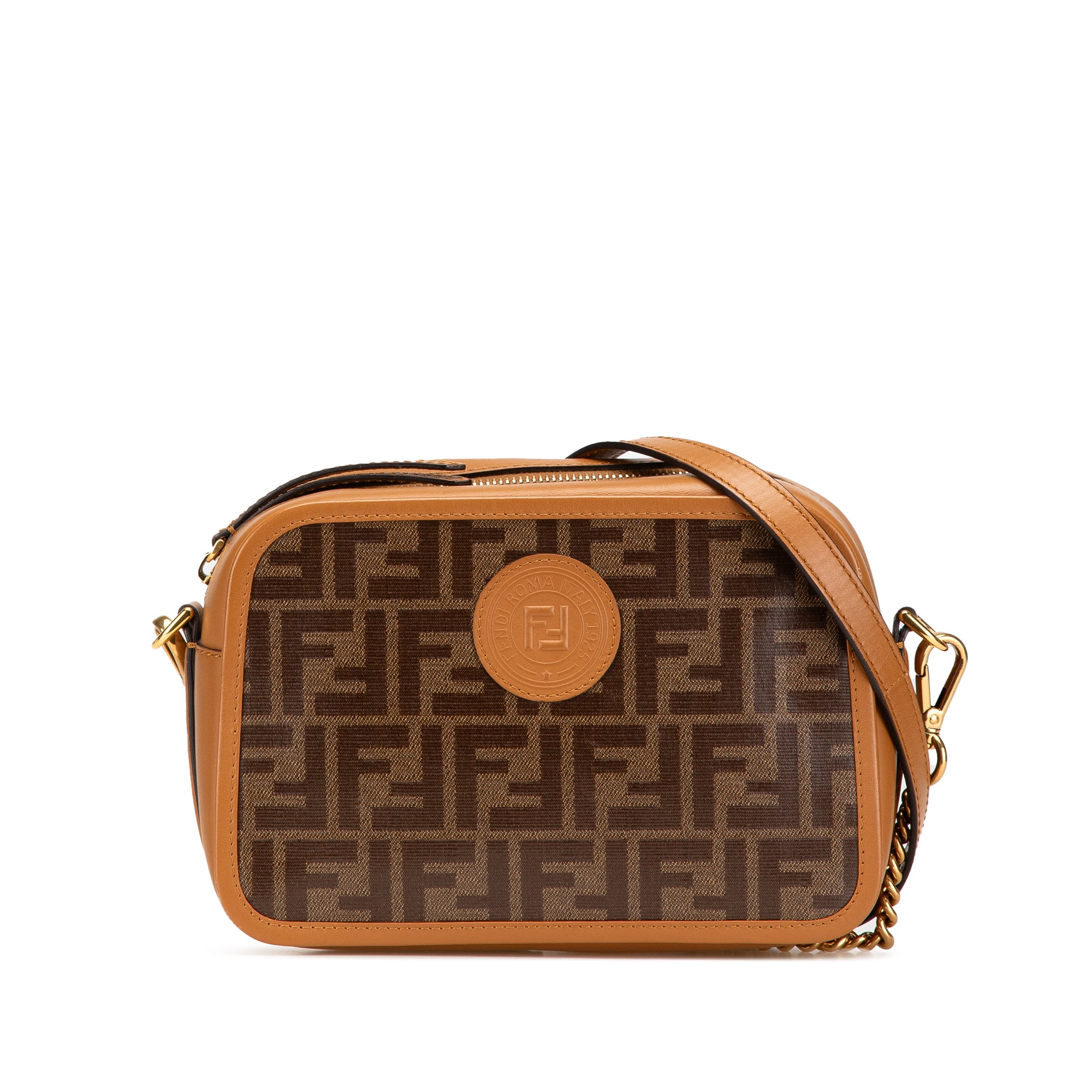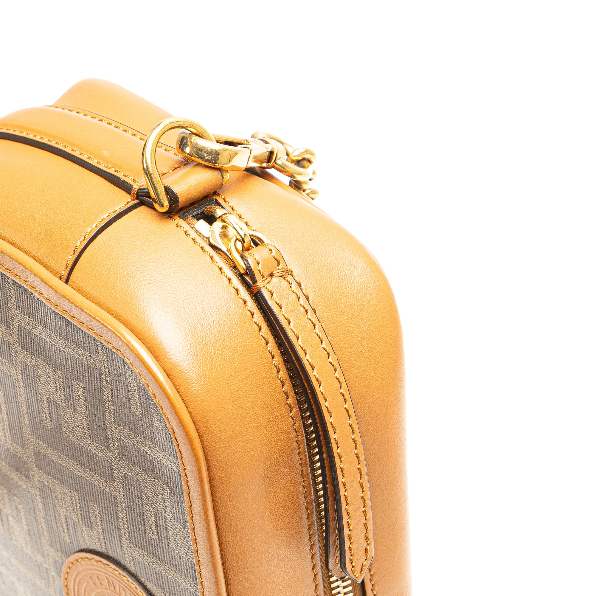 Brown Fendi Glazed Fabric Vitello Century FF 1974 Camera Bag