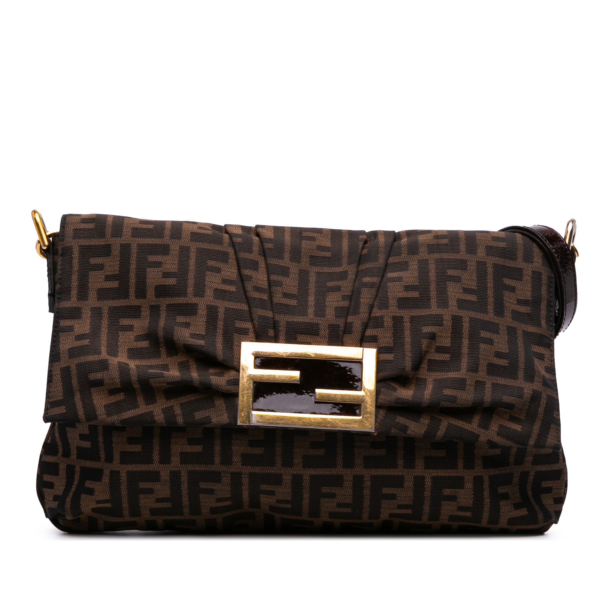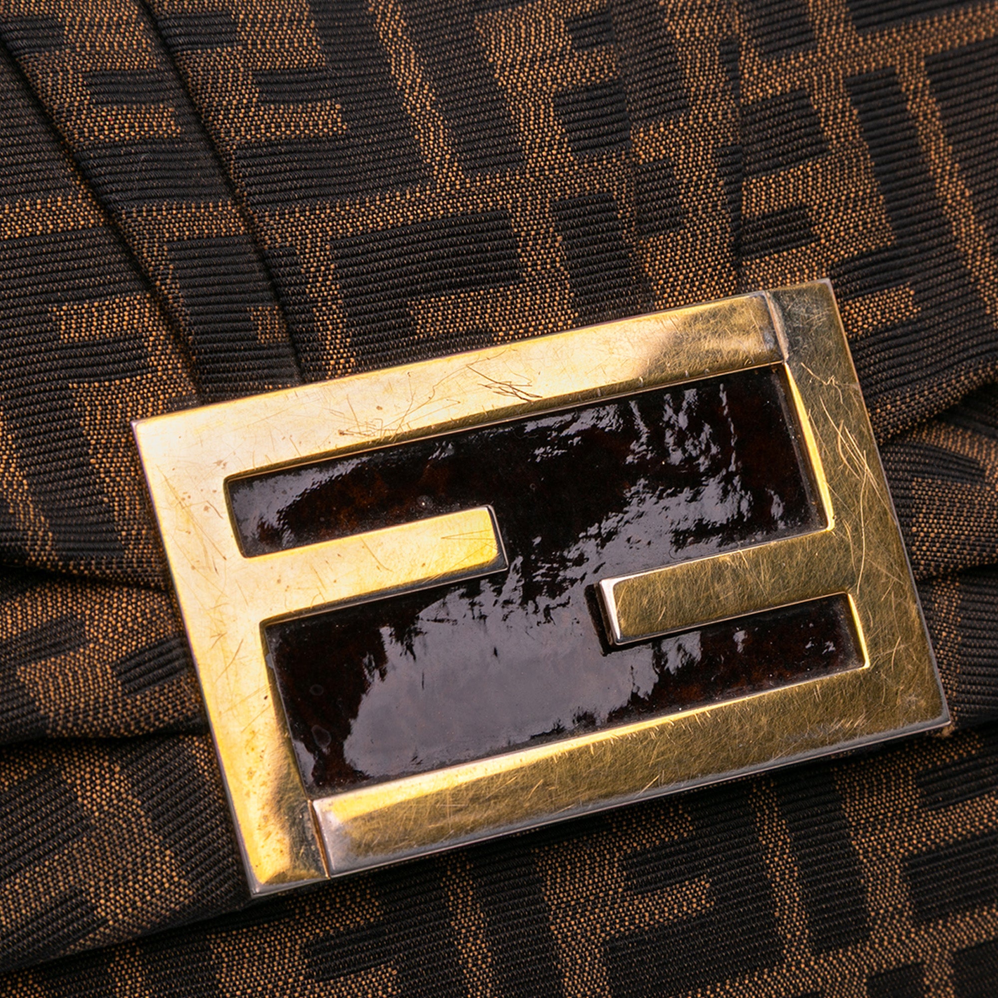 Brown Fendi Large Zucca Canvas Mia Flap Shoulder Bag