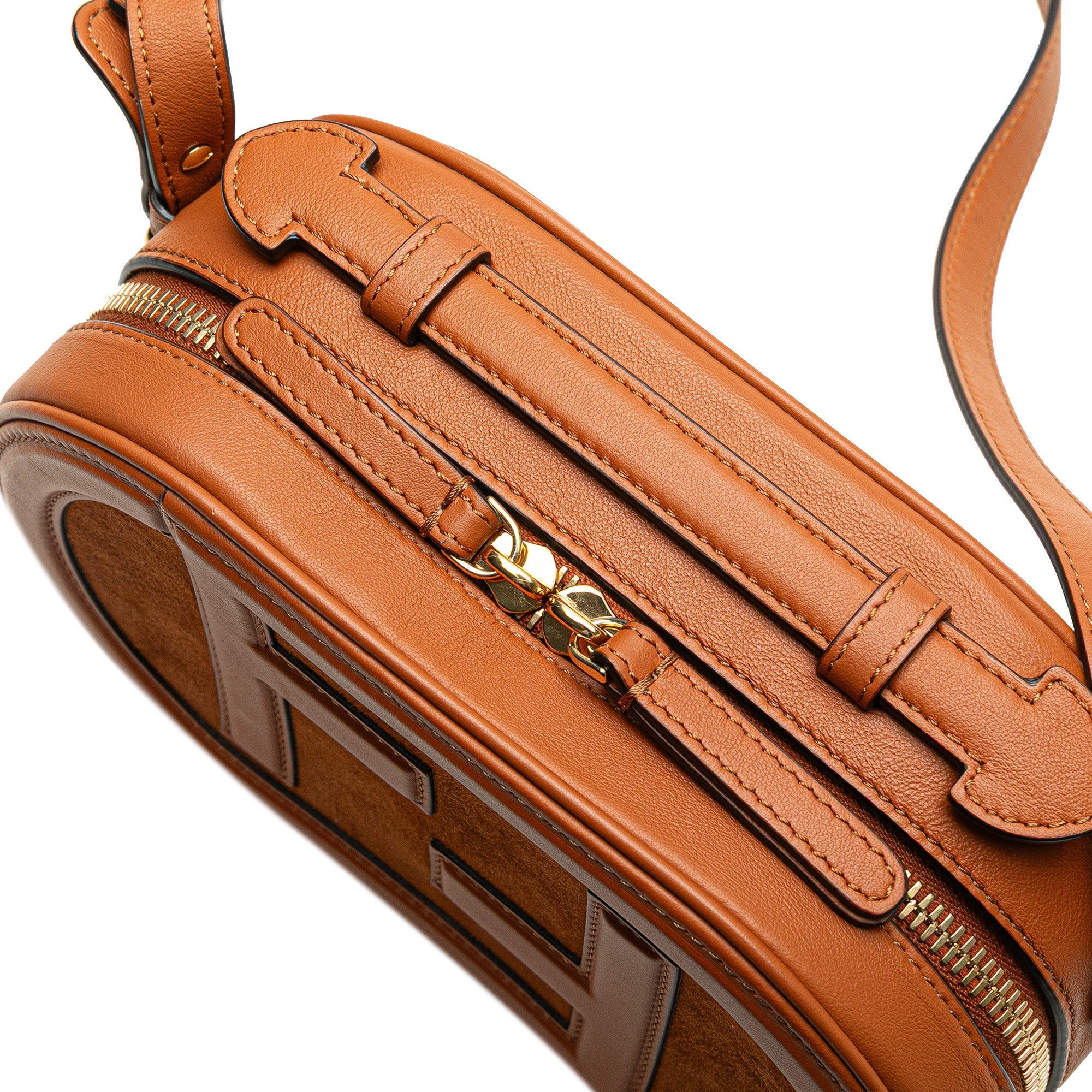 Brown Fendi Mini Goatskin Trimmed Suede O Lock Camera Case Satchel