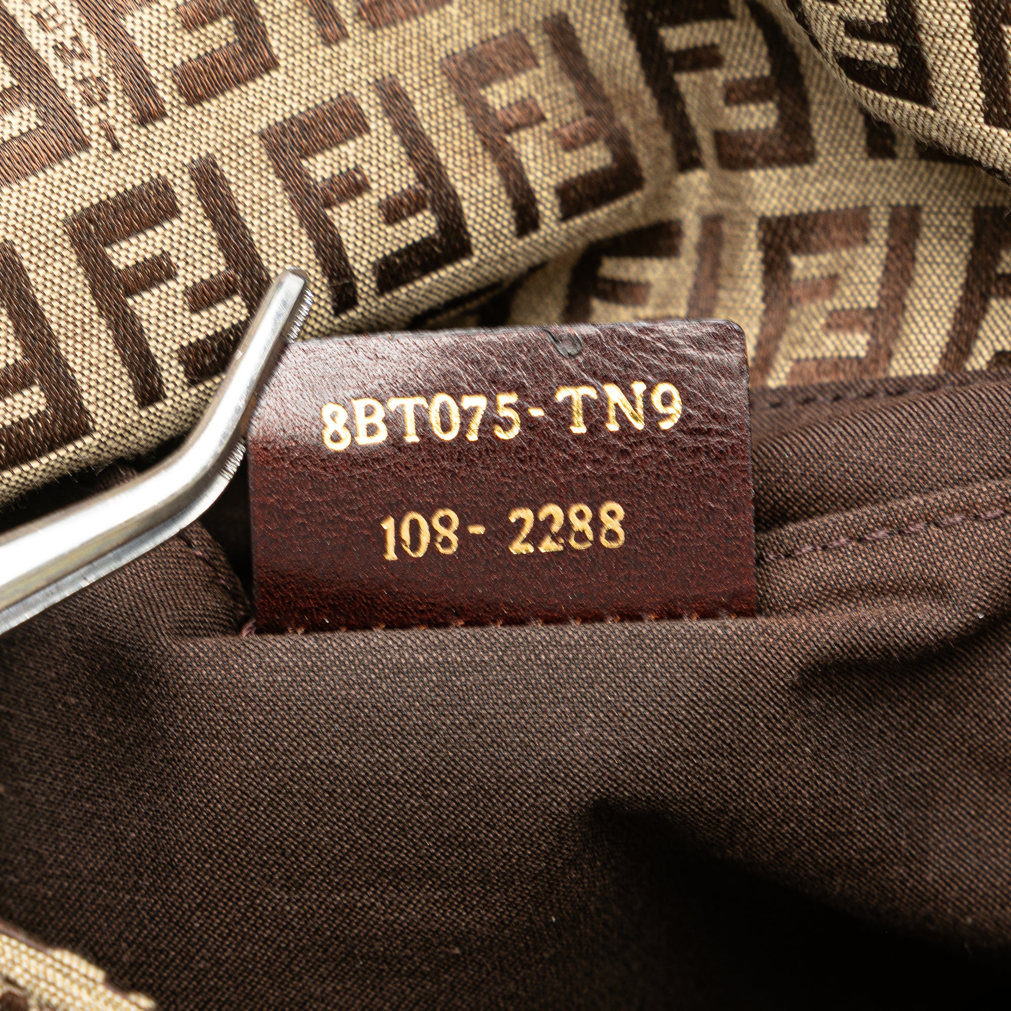 Product Details: Brown Fendi Zucchino Canvas Crossbody. This crossbody bag features a canvas body, an adjustable leather shoulder strap, a front flap with magnetic snap closure, and an interior slip pocket. 9.1" L x 7.9" W x 1.6" D. Serial number 8BT075 TN9 108 2288.