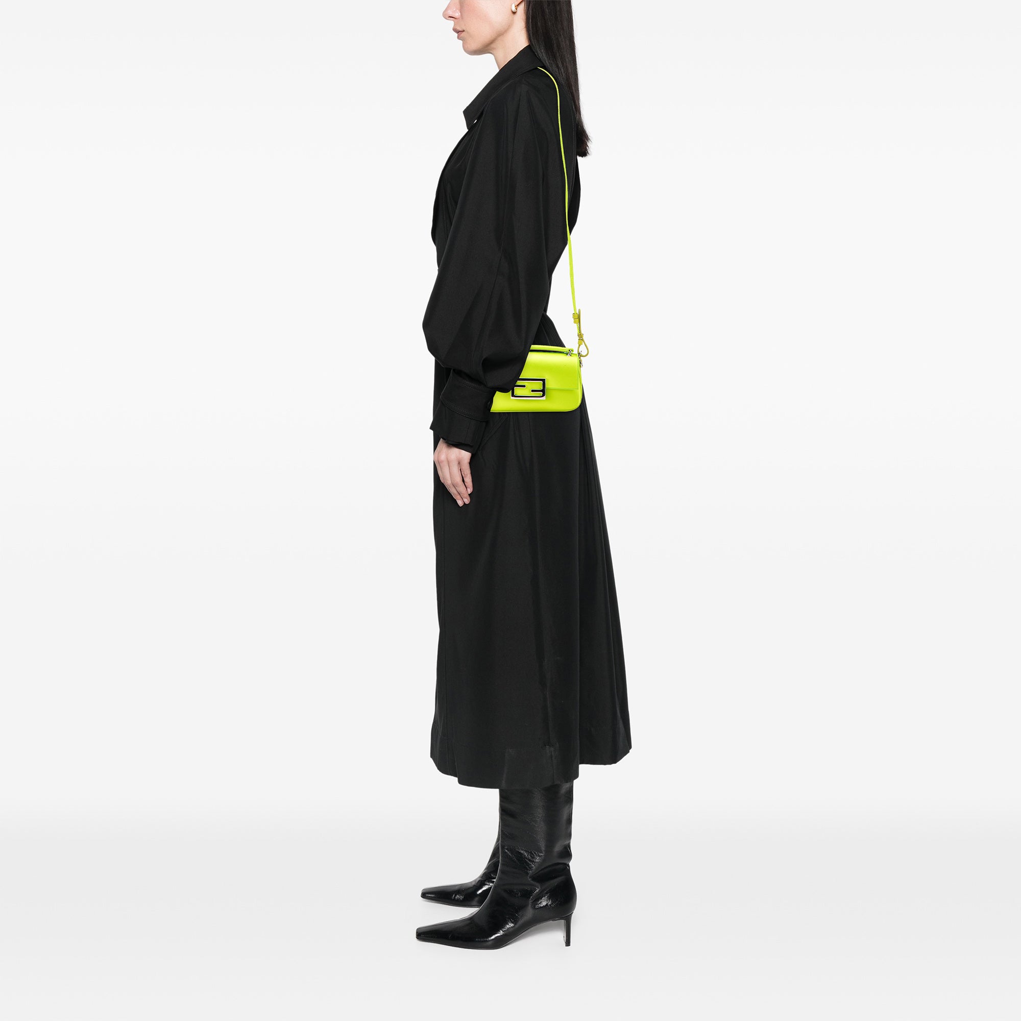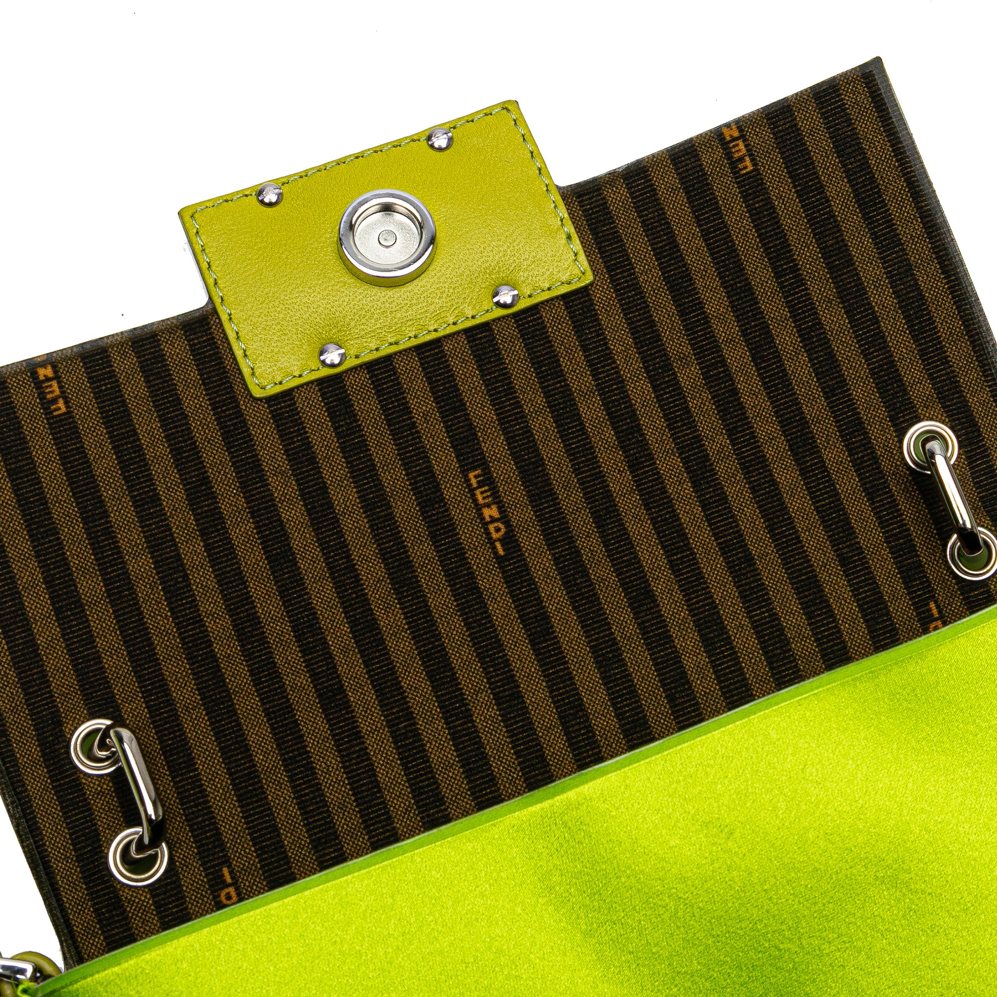 Green Fendi Silk Baguette Phone Pouch Satchel