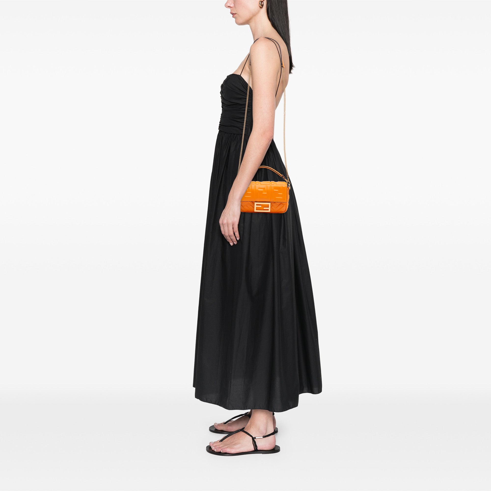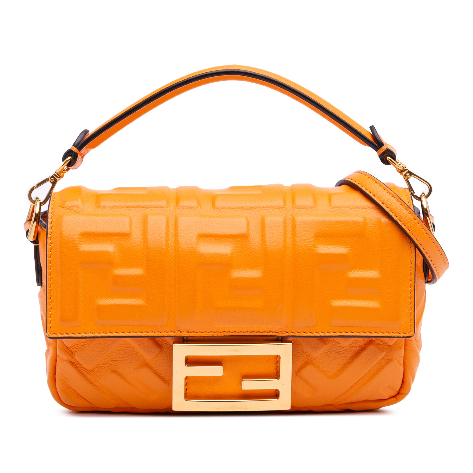 Orange Fendi Mini Zucca Embossed Leather Baguette Satchel