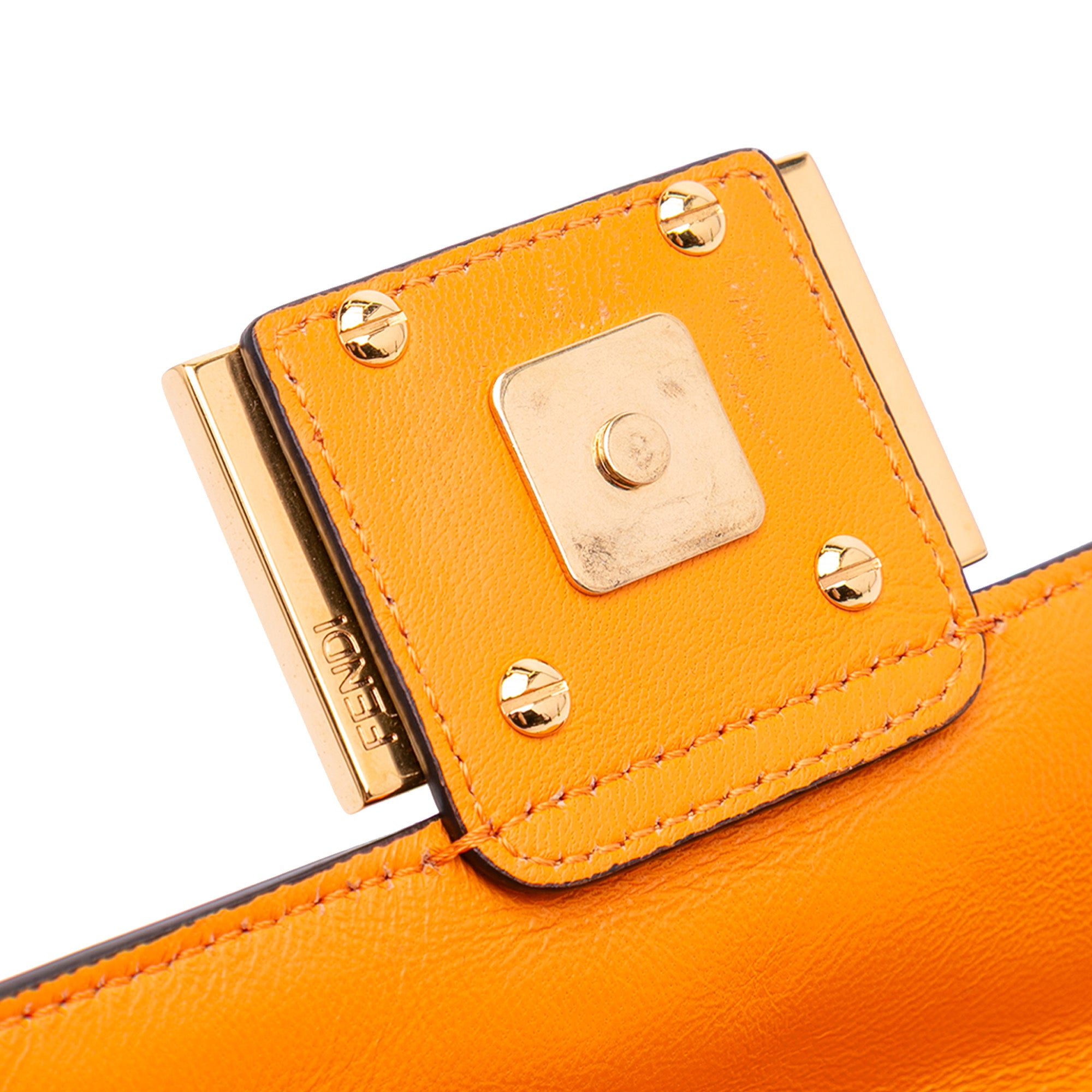 Please note this is a pre-owned item that may display signs of wear consistent with the condition listed above and shown in photos. Designer Revival guarantees this is an authentic Orange Fendi Mini Zucca Embossed Leather Baguette Satchel or 100% of your money back. Learn more about our authentication process.