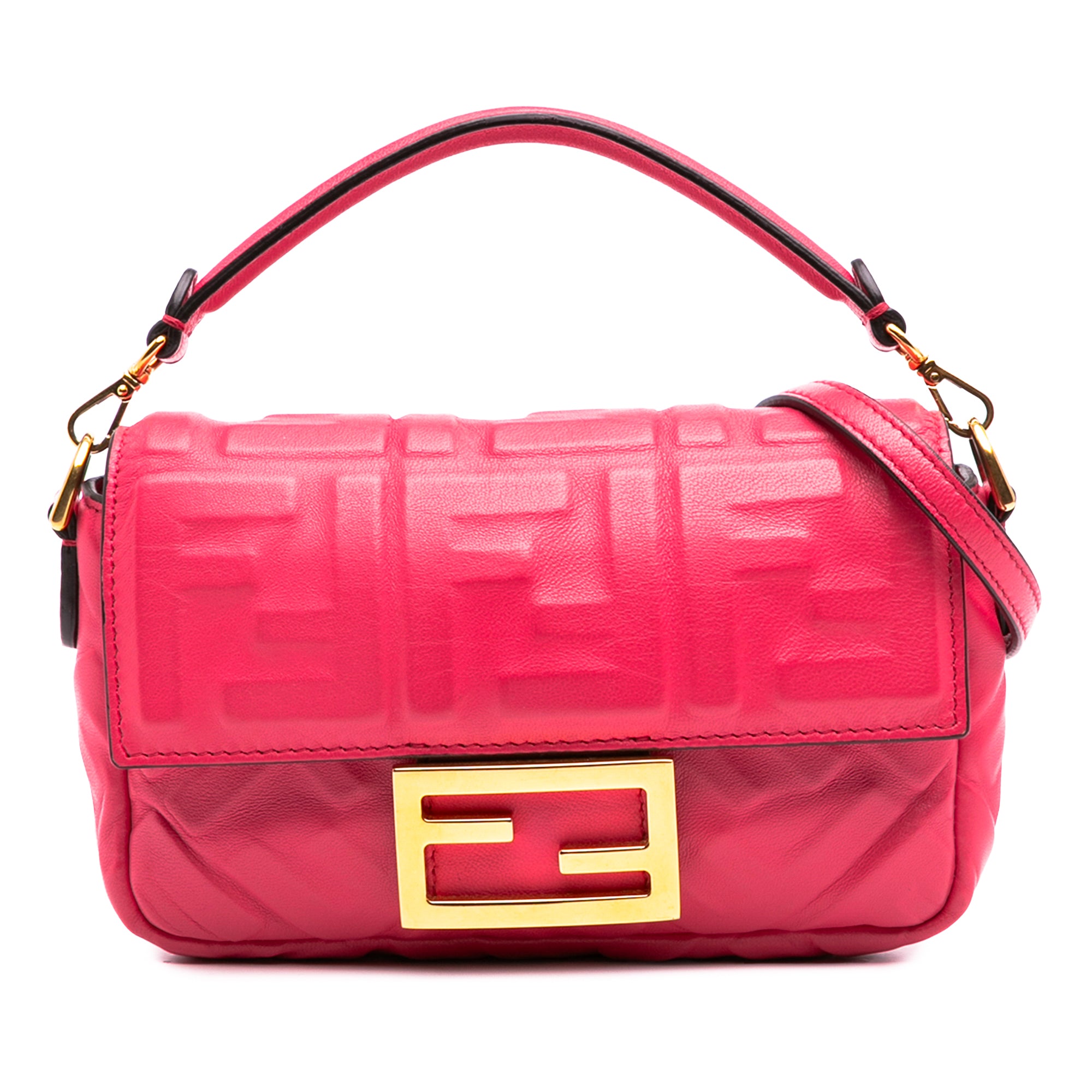 Pink Fendi Mini Zucca Embossed Leather Baguette Satchel