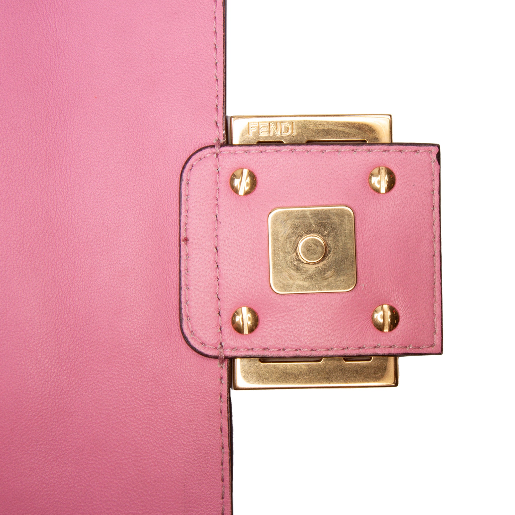 Pink Fendi Zucca Embossed Leather Baguette Satchel