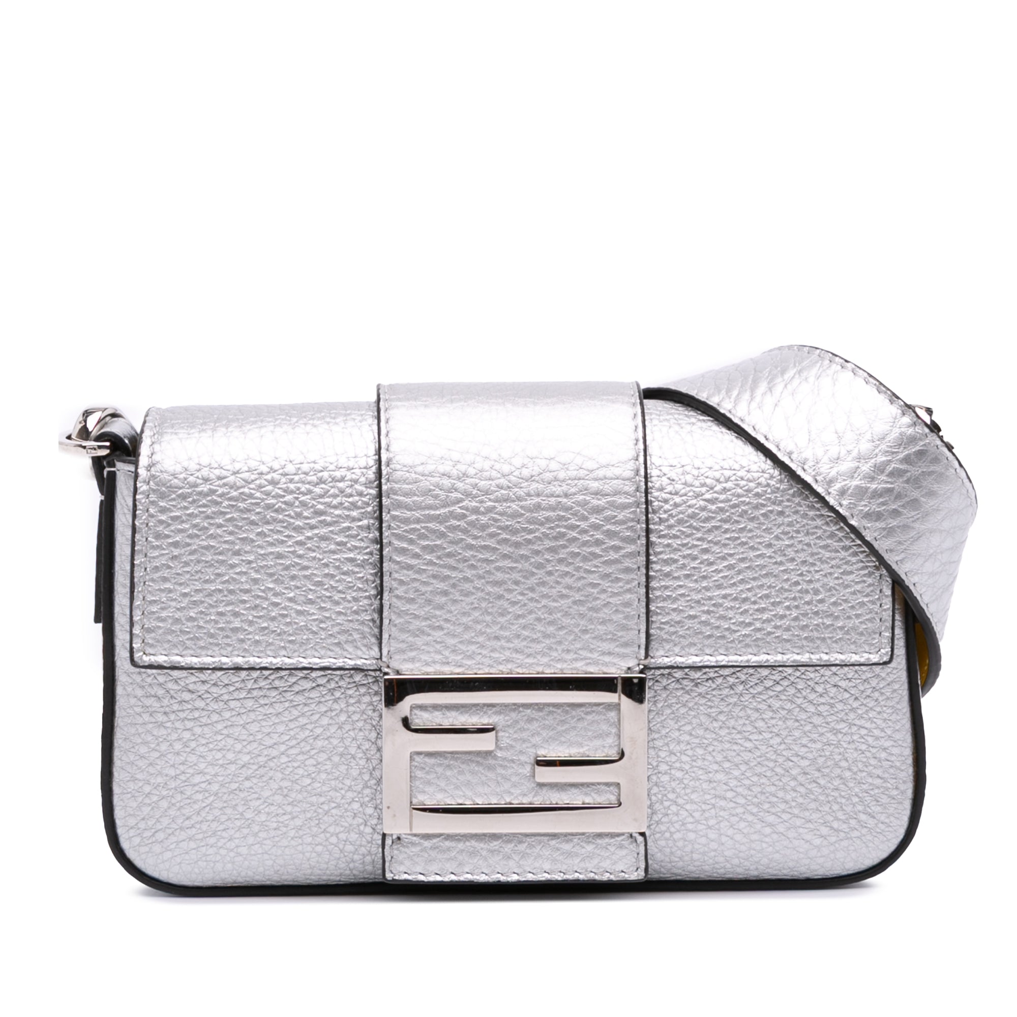 Please note this is a pre-owned item that may display signs of wear consistent with the condition listed above and shown in photos. Designer Revival guarantees this is an authentic Silver Fendi Leather Baguette Crossbody or 100% of your money back. Learn more about our authentication process.