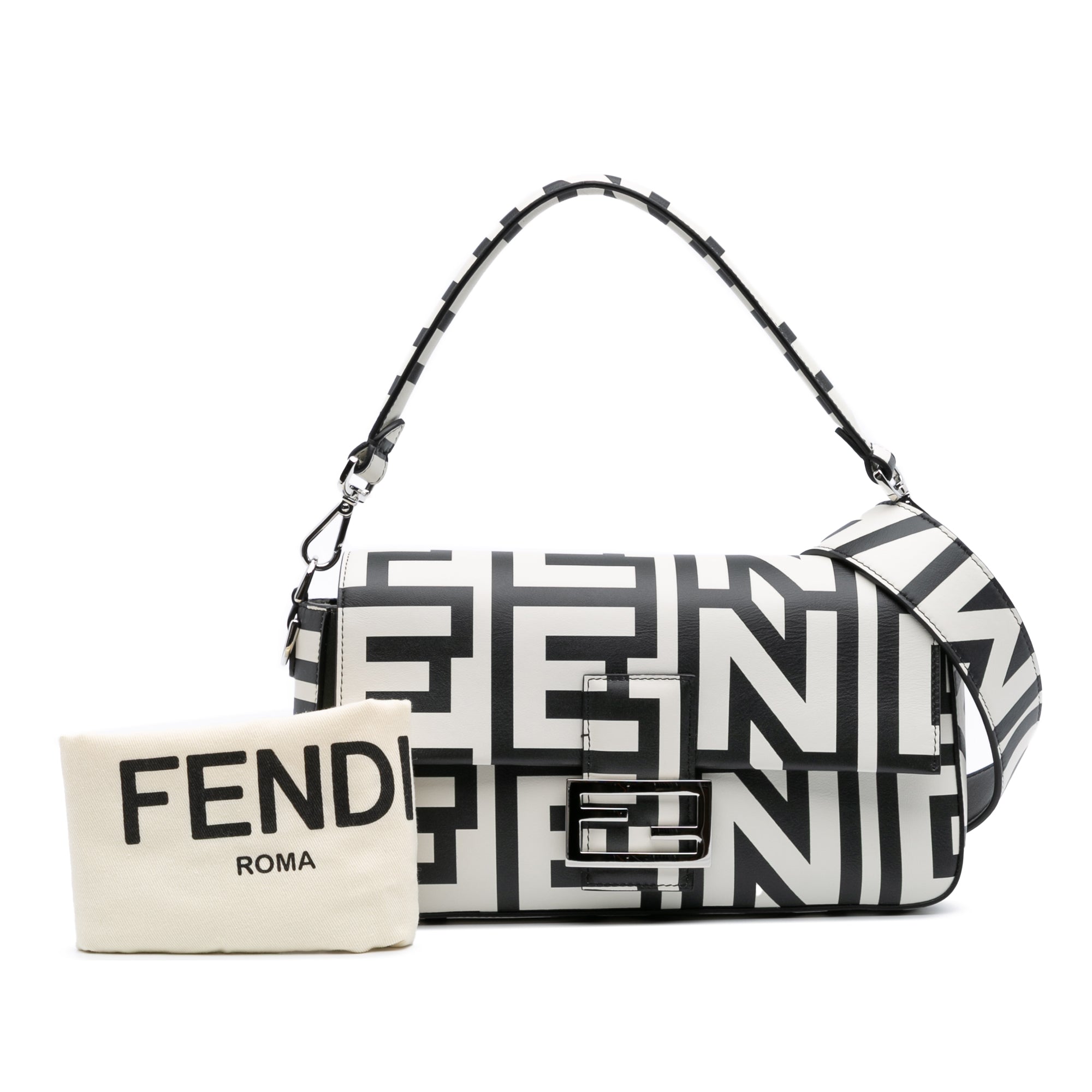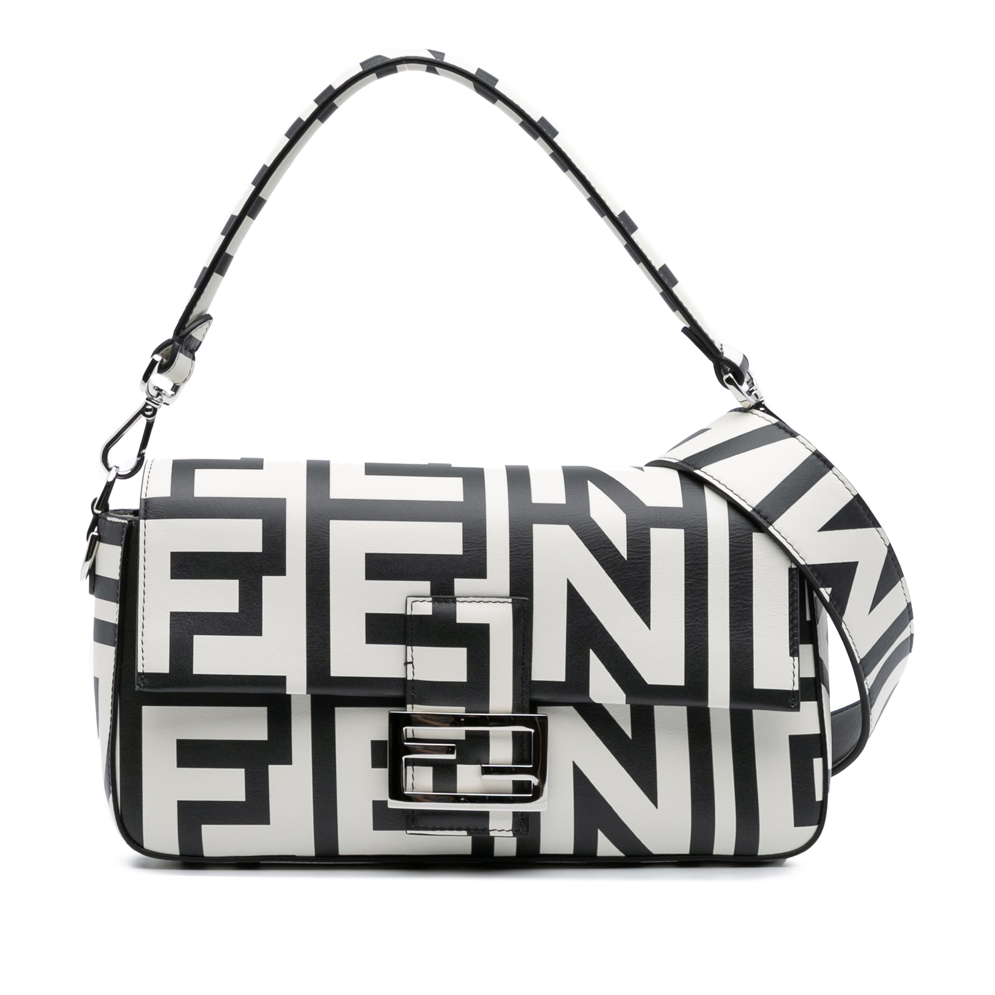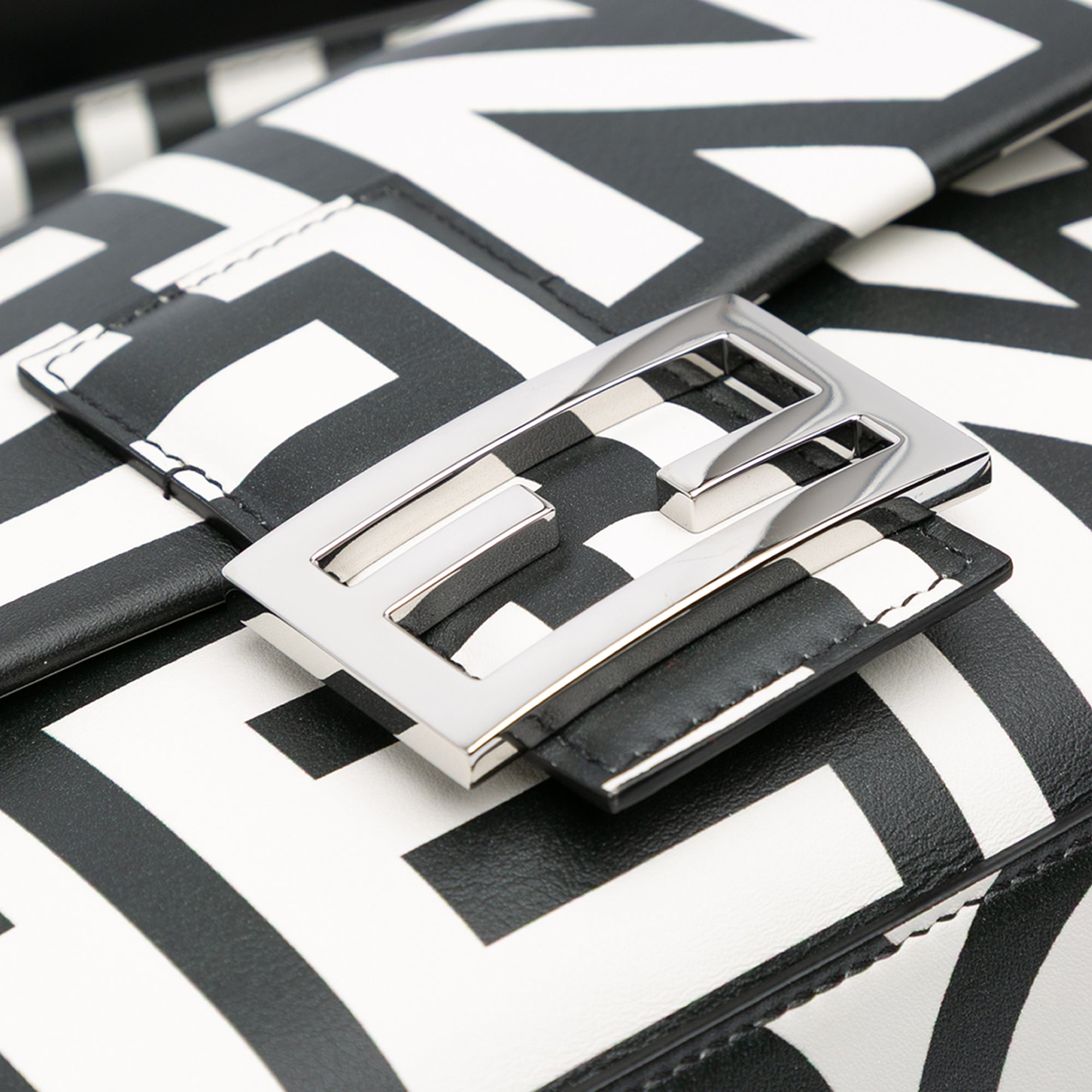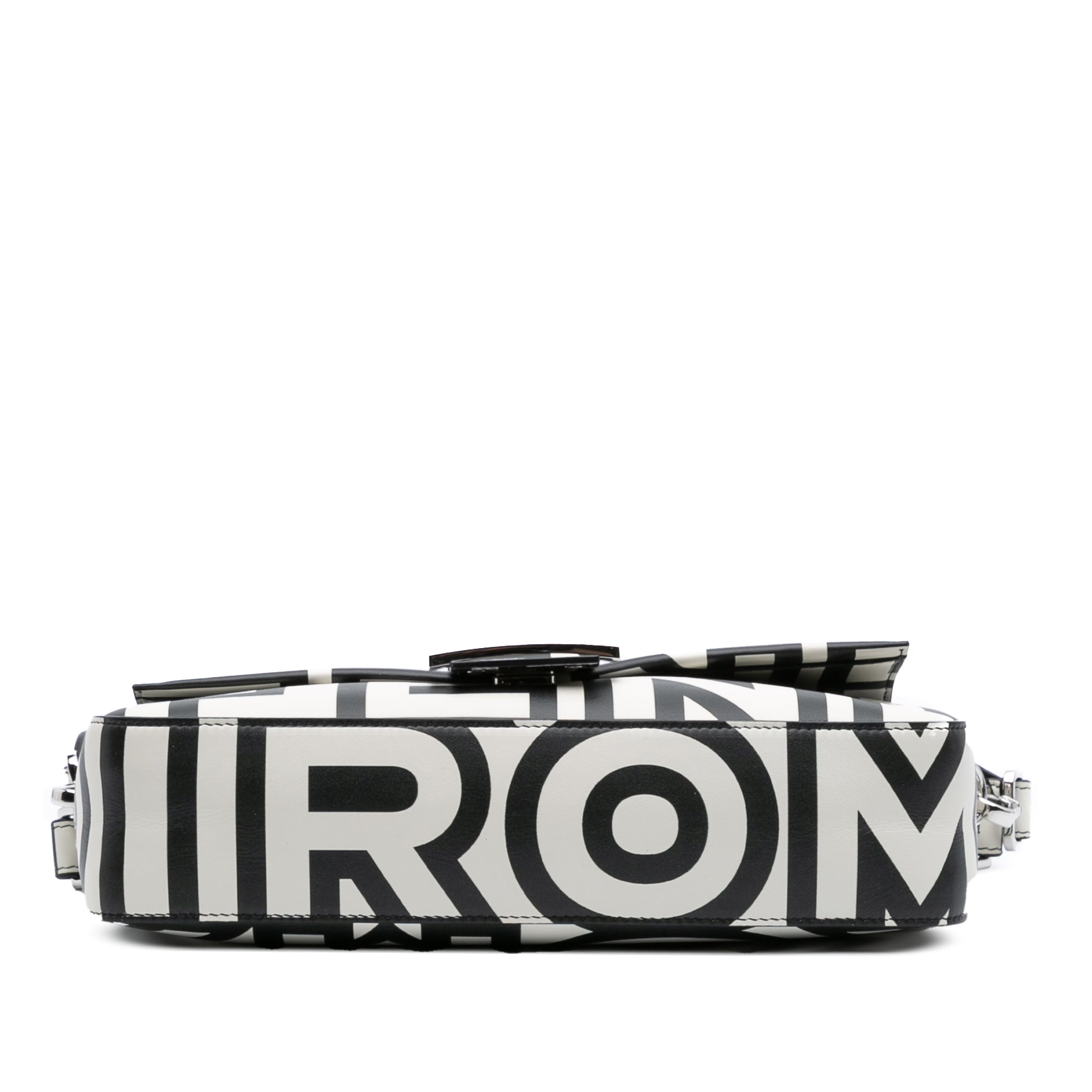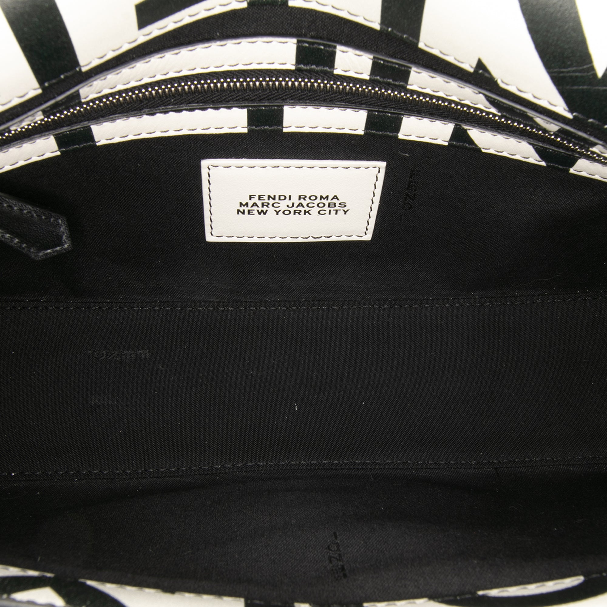 White Fendi Marc Jacobs Nappa Vitello King Logo Print Baguette Satchel