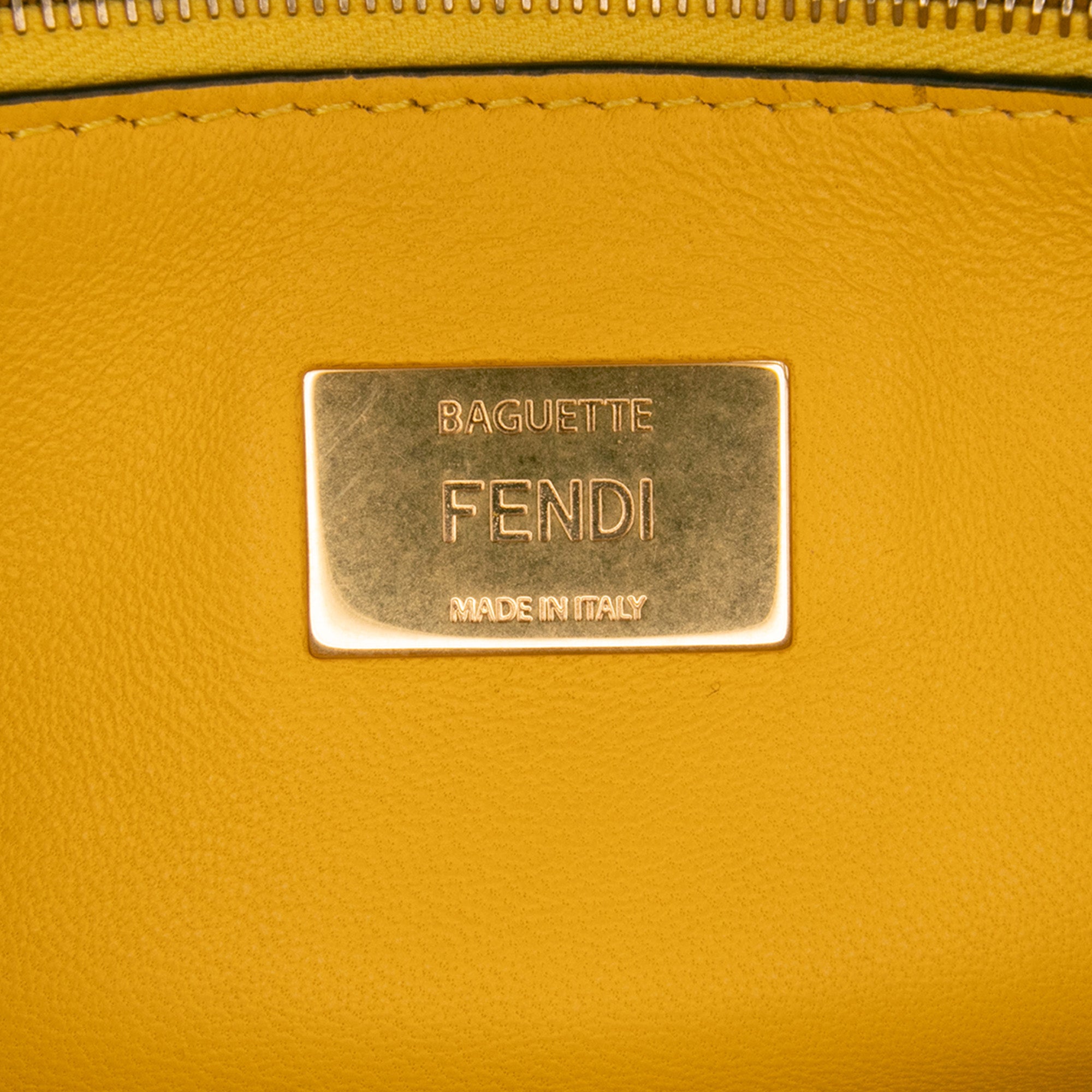 Please note this is a pre-owned item that may display signs of wear consistent with the condition listed above and shown in photos. Designer Revival guarantees this is an authentic Yellow Fendi Zucca Embossed Chain Midi Baguette Shoulder Bag or 100% of your money back. Learn more about our authentication process.