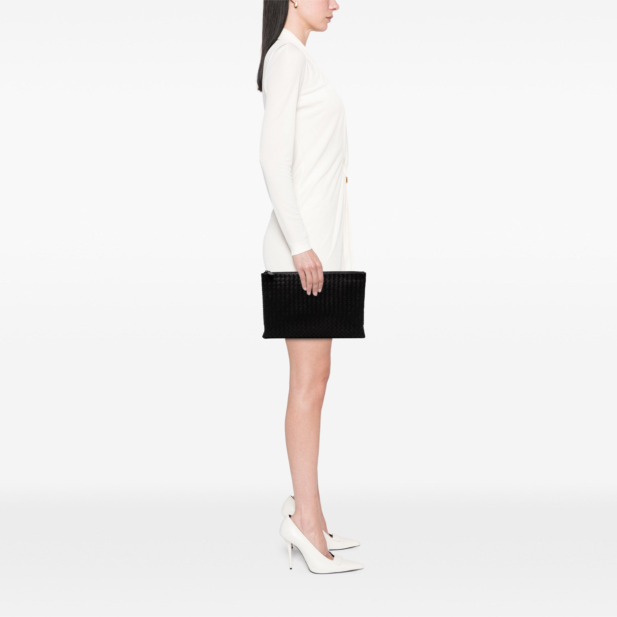 Black Bottega Veneta Large Nappa Intrecciato Flat Zip Biletto Pouch Clutch Bag