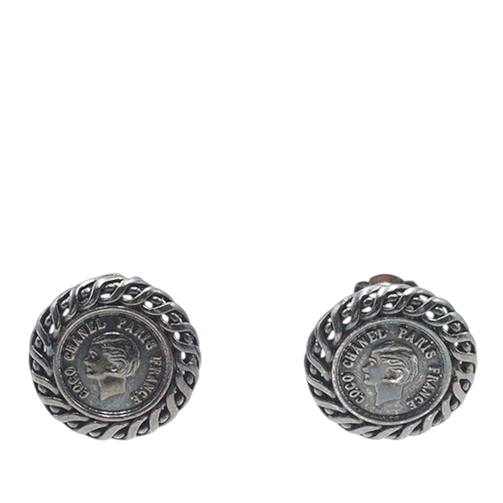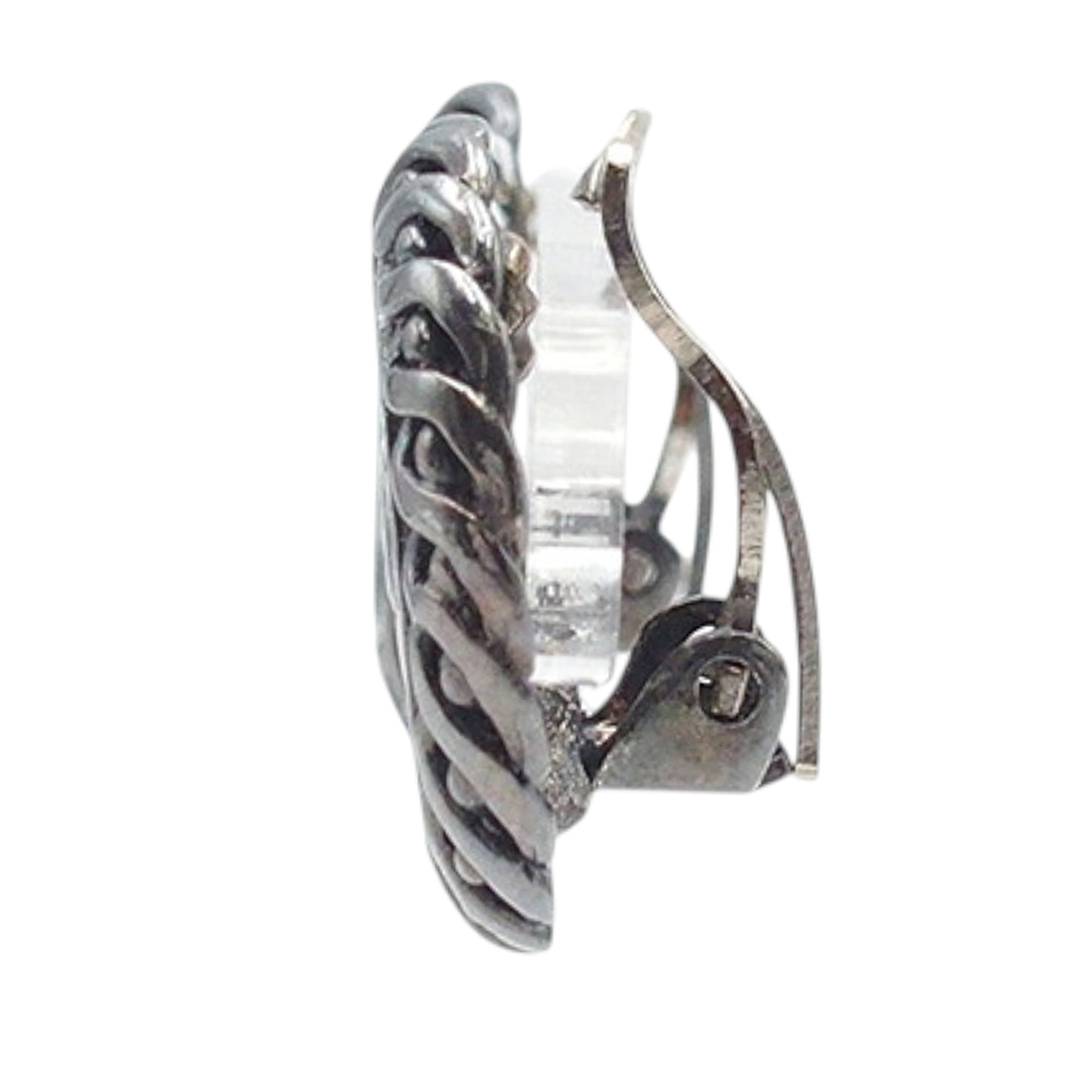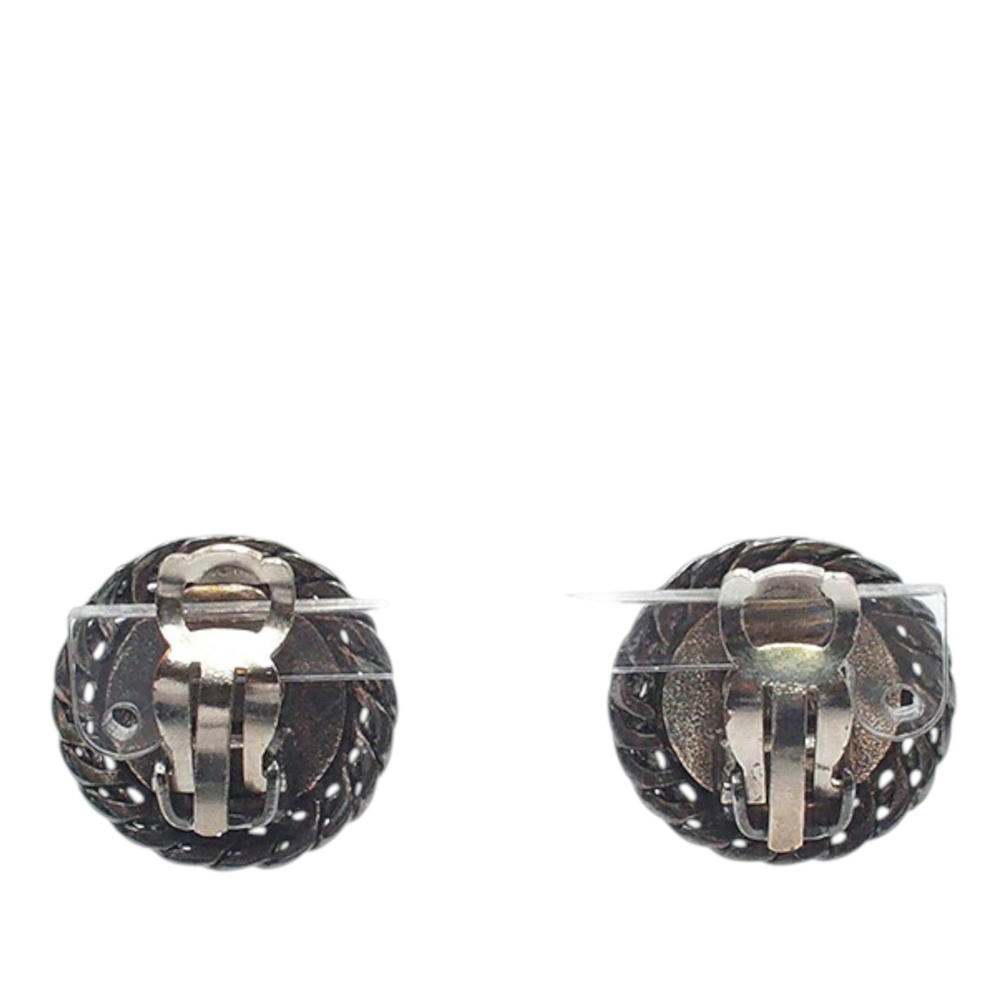 Black Chanel Gunmetal Plated Medallion Clip on Earrings