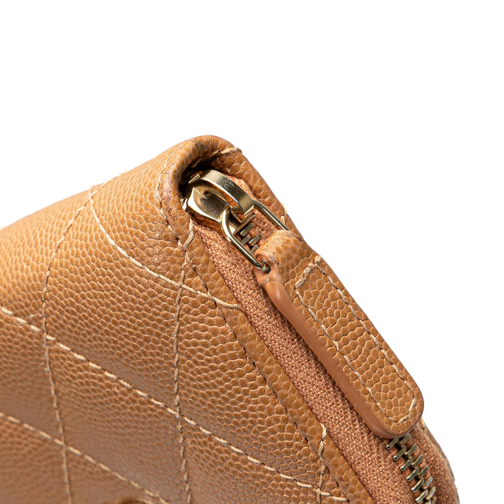 Brown Chanel CC Quilted Caviar Zip Around Coin Purse