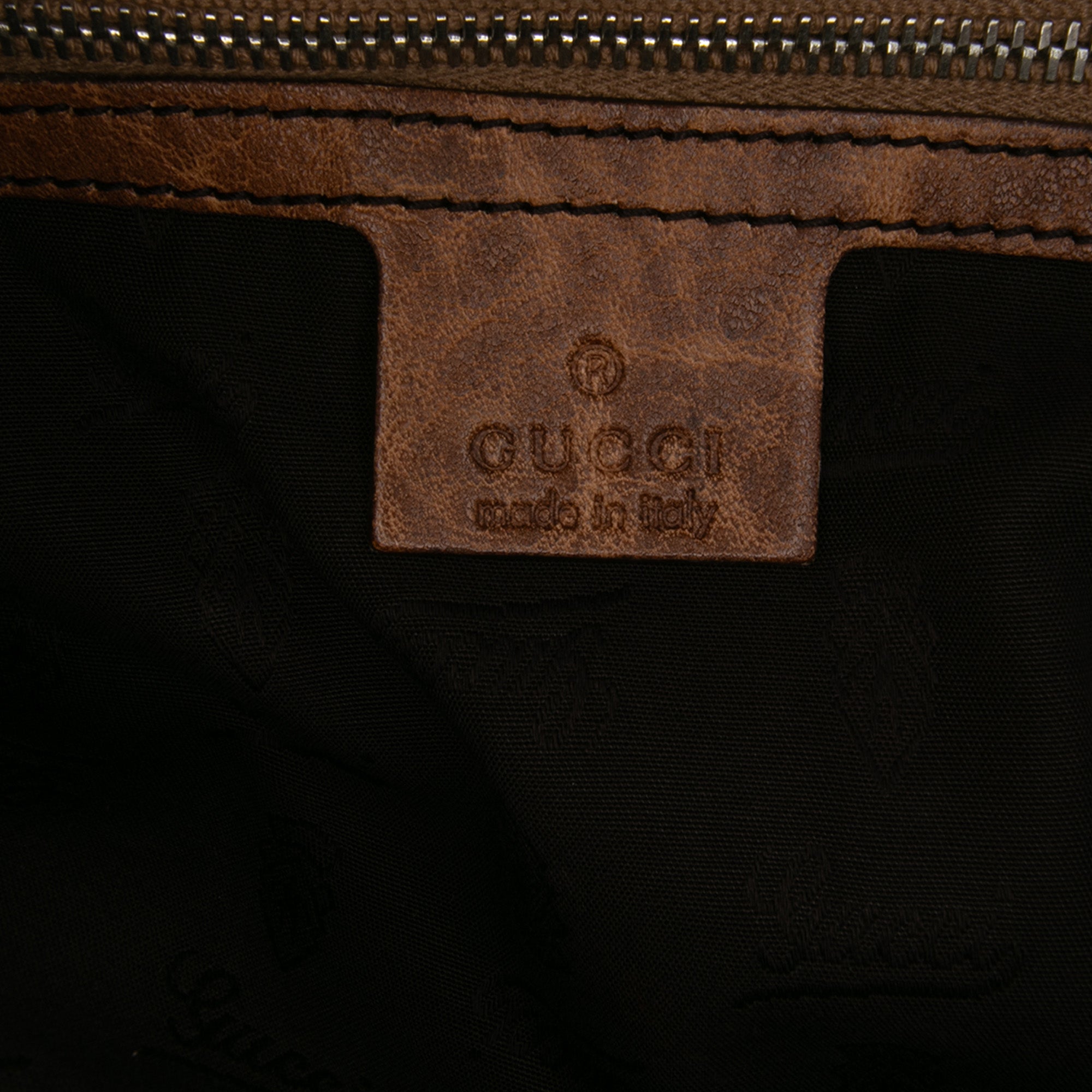 Product Details: Brown Gucci Medium GG Canvas Bamboo Bar Tote. This tote features a canvas body with leather trim, braided leather straps, a top zip closure, and interior zip and slip pockets. 10.6" L x 15.6" W x 5.9" D, 8.7" drop. Serial number 232959 467891.