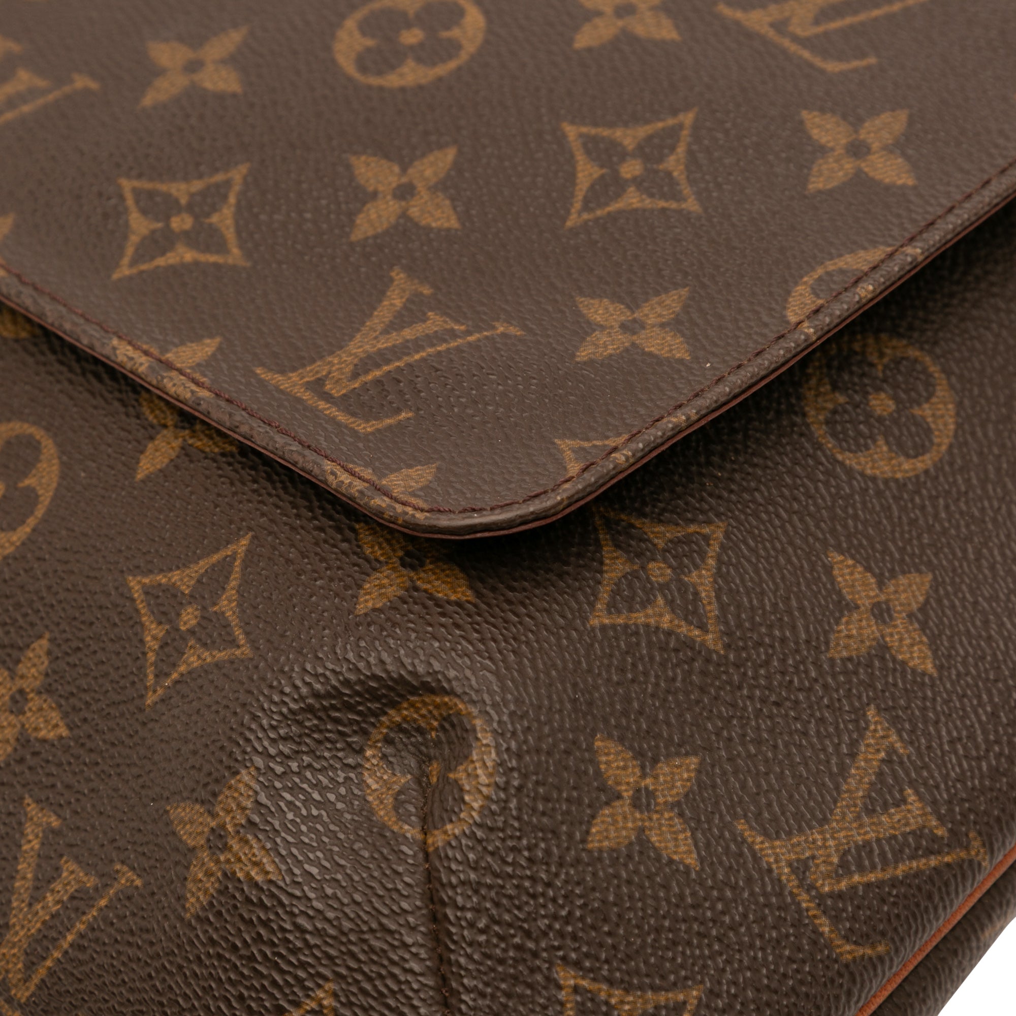 Product Details: Brown Louis Vuitton Monogram Musette Salsa GM Crossbody Bag. The Musette Salsa features a monogram canvas body with vachetta leather trim, an adjustable vachetta leather shoulder strap with buckle details, a front flap with magnetic snap closure, and an interior slip pocket. 14.8" L x 12.6" W x 0.6" D. Serial number AS0999.