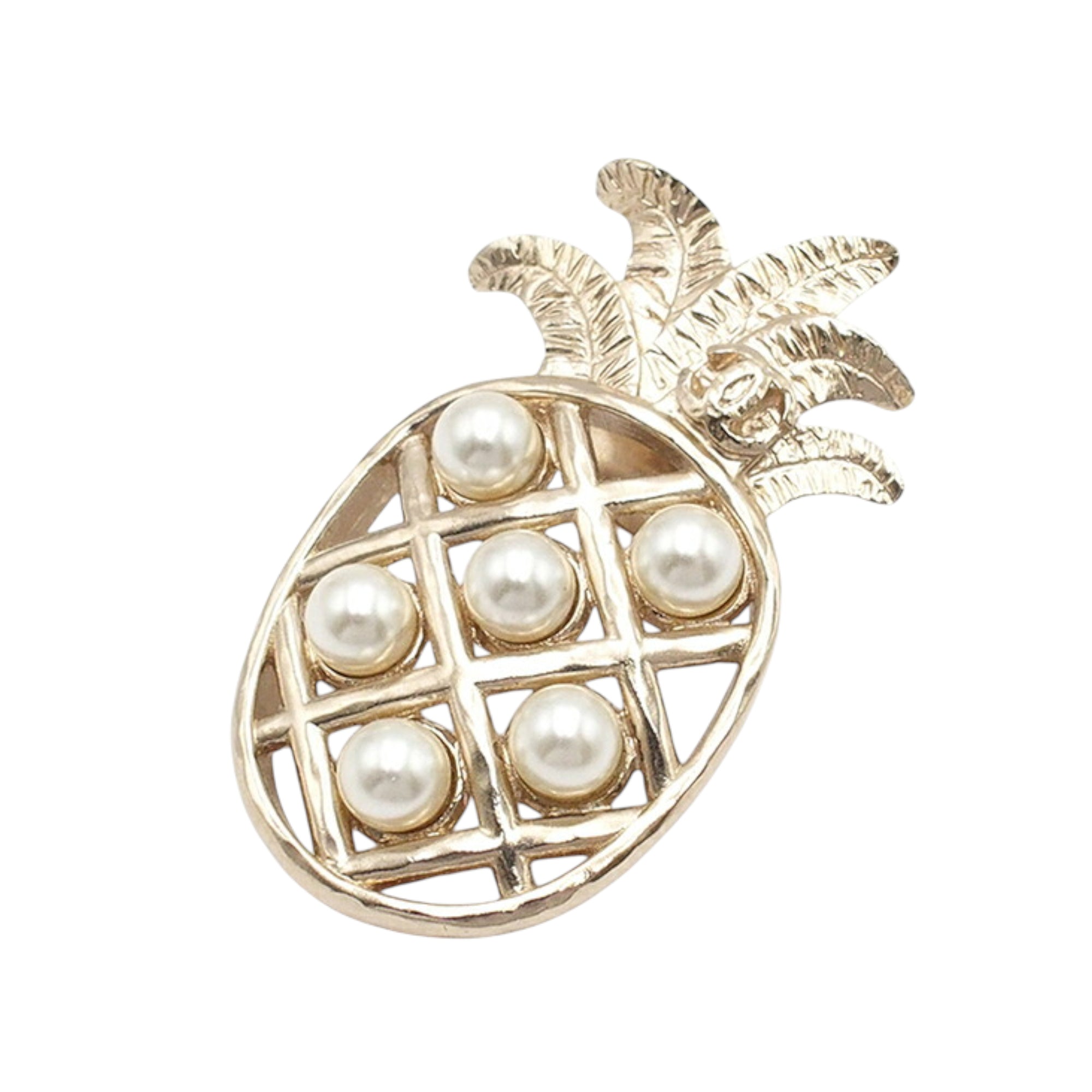 Gold Chanel Gold Plated Faux Pearl Pineapple Pin Brooch