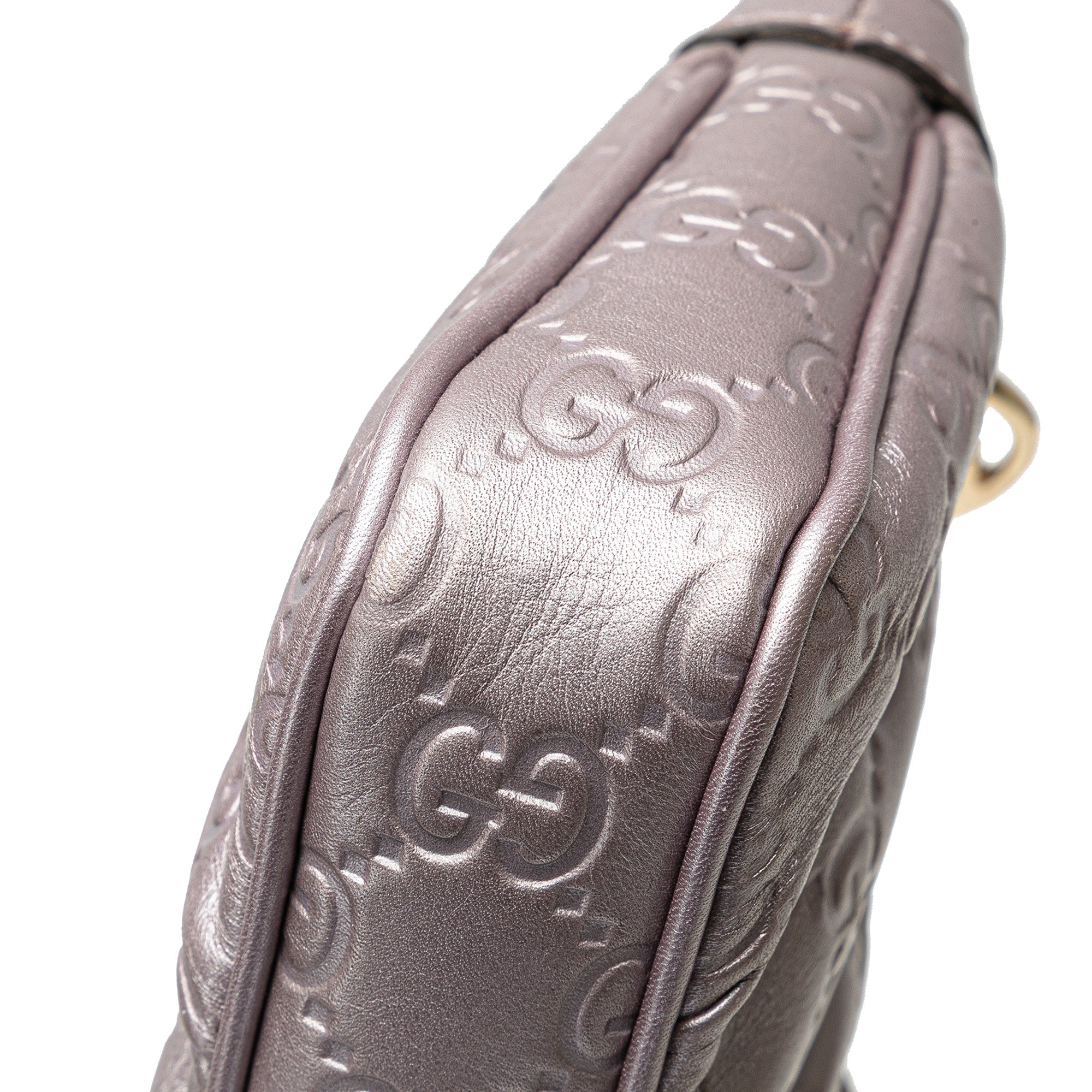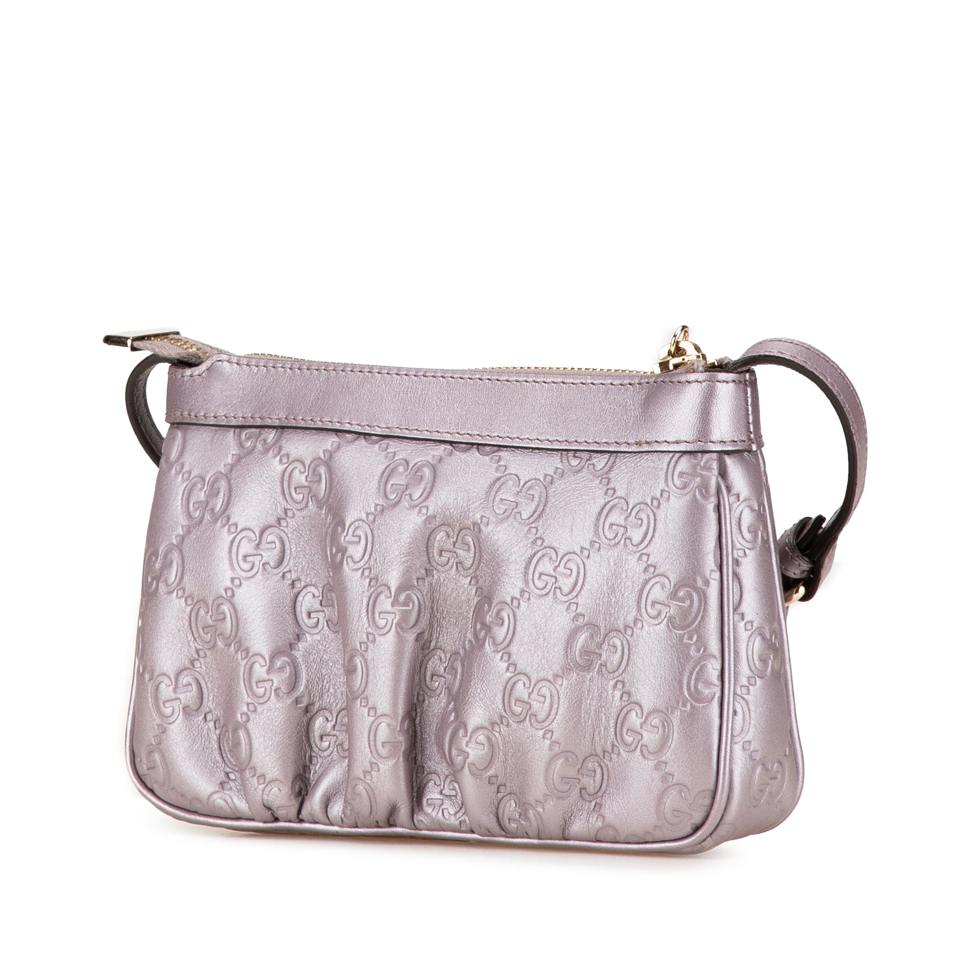 Please note this is a pre-owned item that may display signs of wear consistent with the condition listed above and shown in photos. Designer Revival guarantees this is an authentic Purple Gucci Small Metallic Guccissima Lovely Crossbody or 100% of your money back. Learn more about our authentication process.