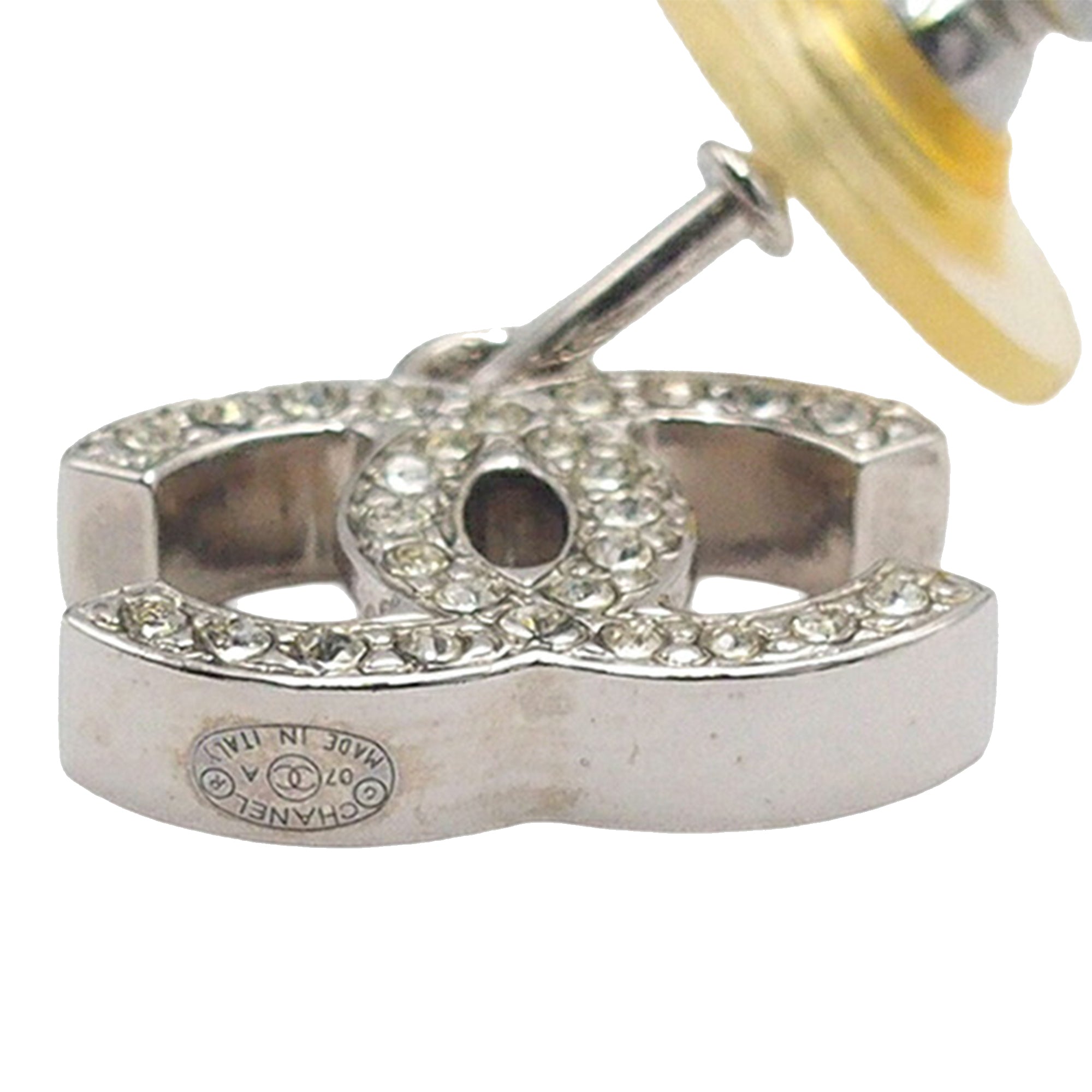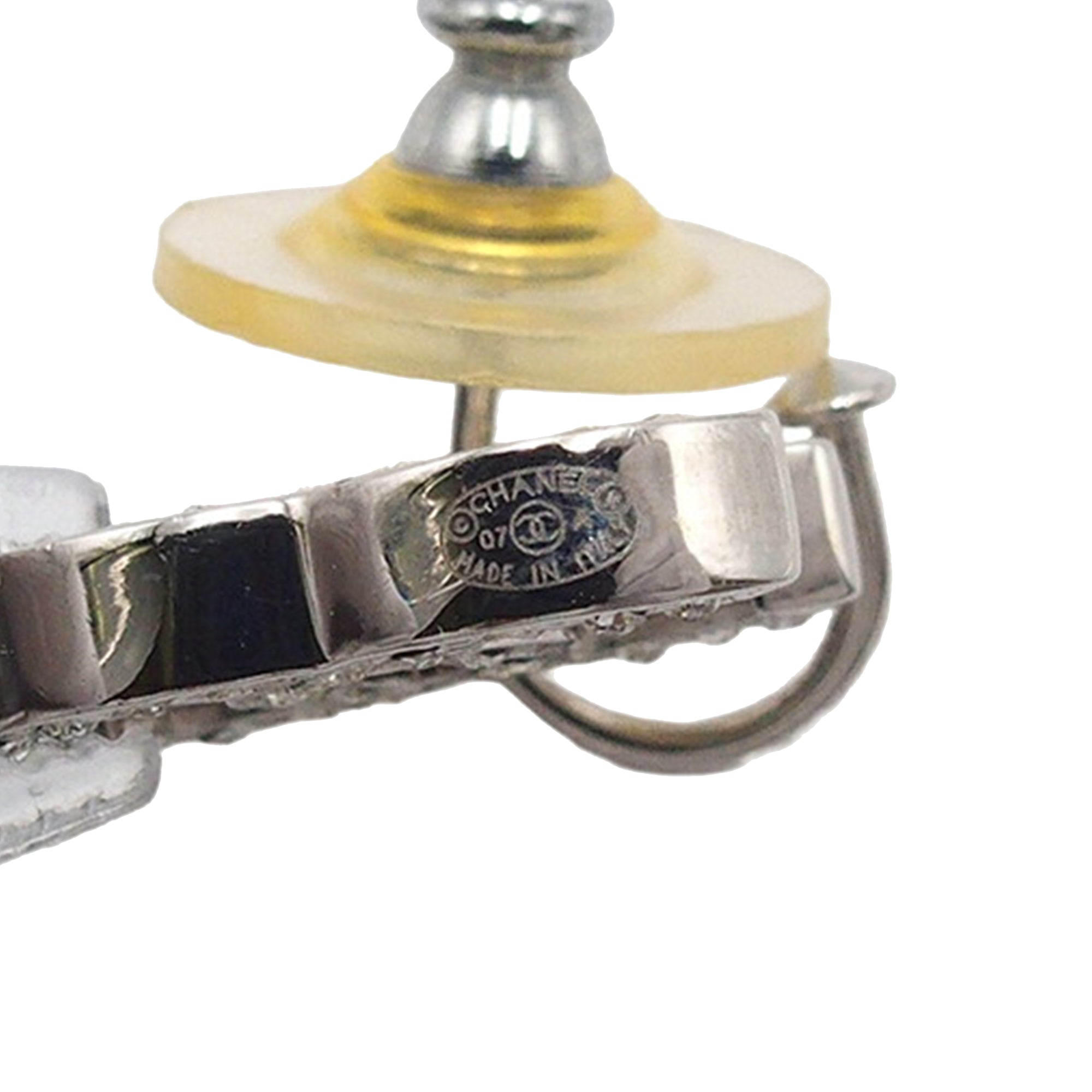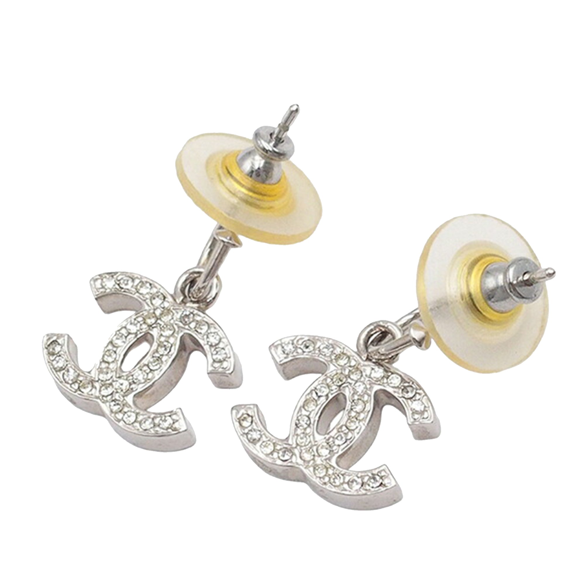 Silver Chanel Silver Plated Crystal CC Drop Push Back Earrings