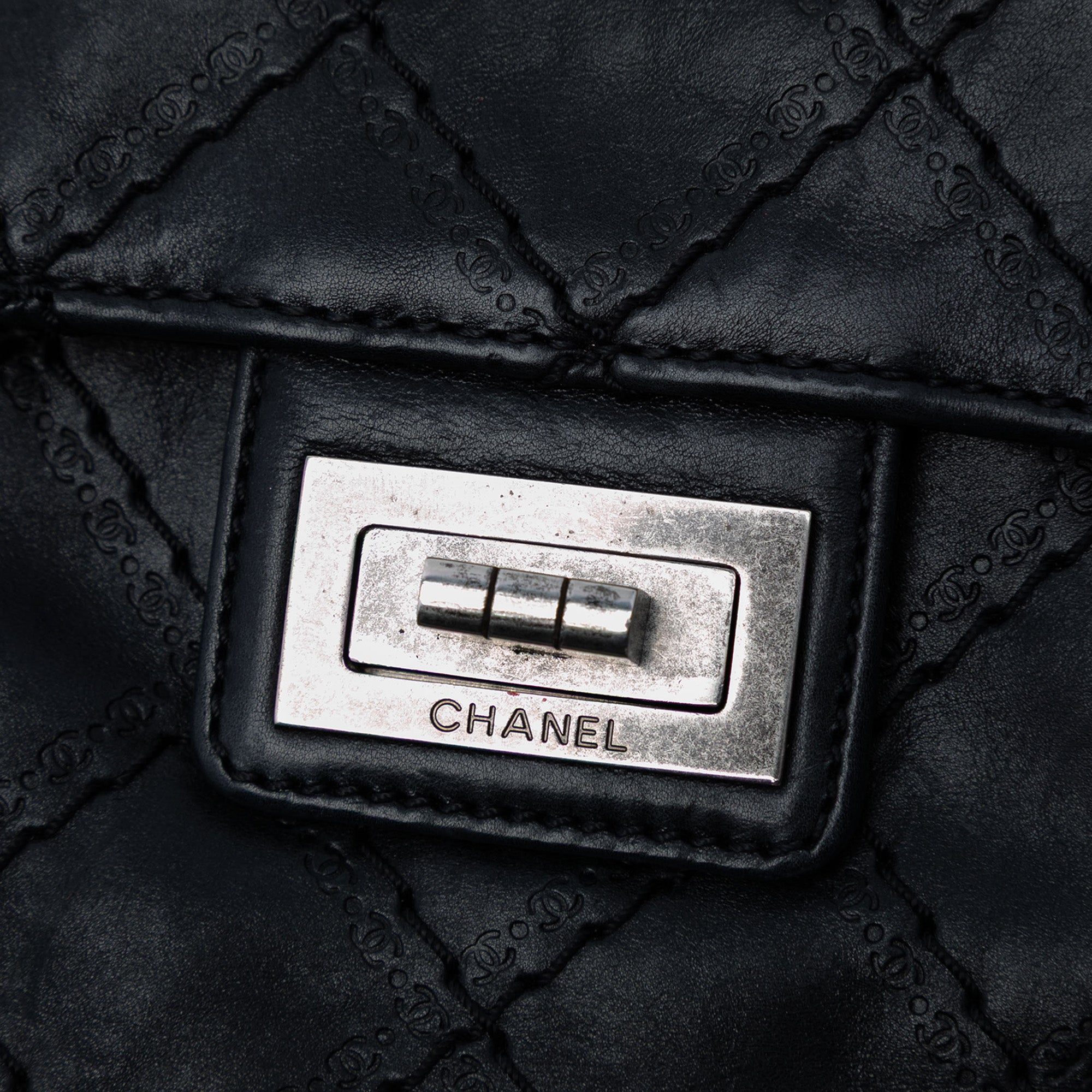 Black Chanel Embossed CC Quilted Aged Calfskin Reissue 2.55 Single Flap 227 Shoulder Bag
