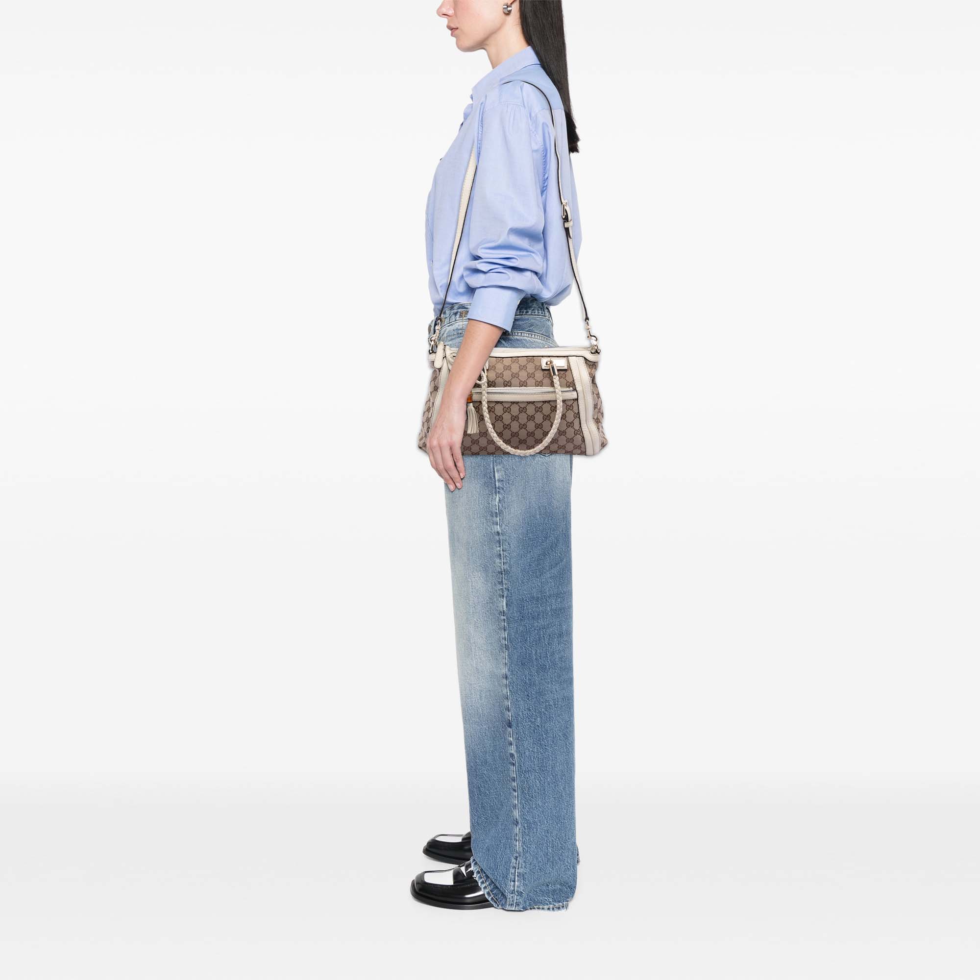 Please note this is a pre-owned item that may display signs of wear consistent with the condition listed above and shown in photos. Designer Revival guarantees this is an authentic Brown Gucci GG Canvas Bella Satchel or 100% of your money back. Learn more about our authentication process.