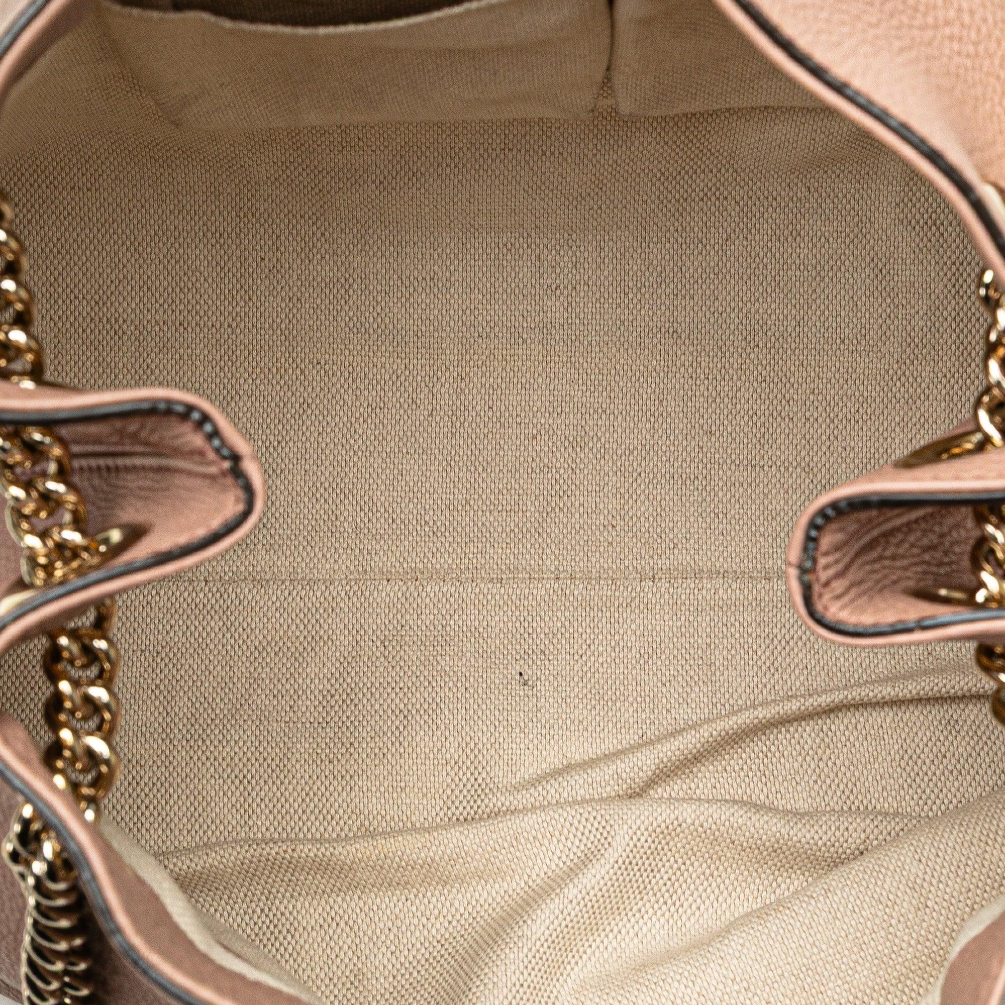 Please note this is a pre-owned item that may display signs of wear consistent with the condition listed above and shown in photos. Designer Revival guarantees this is an authentic Brown Gucci Medium Leather Soho Chain Tote or 100% of your money back. Learn more about our authentication process.