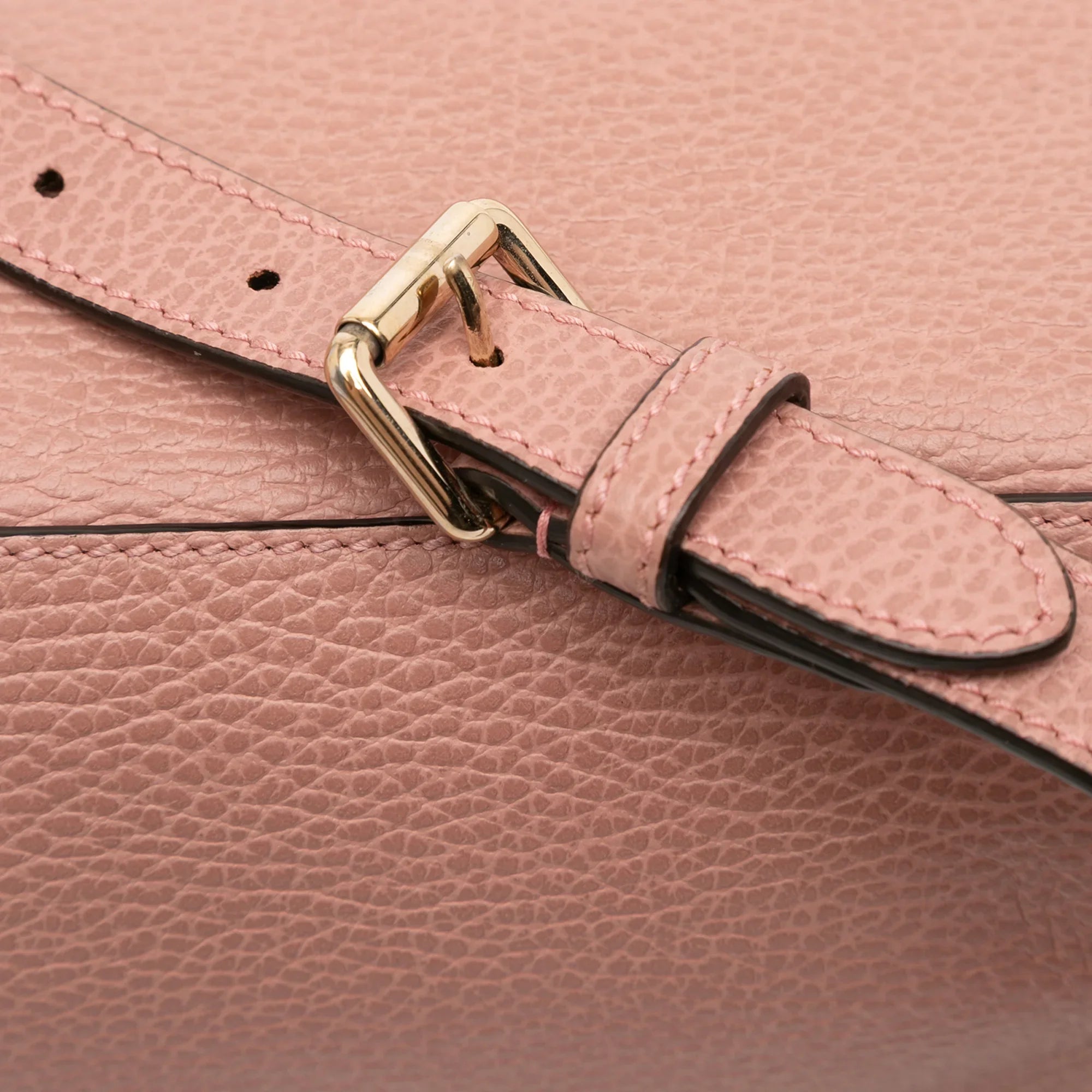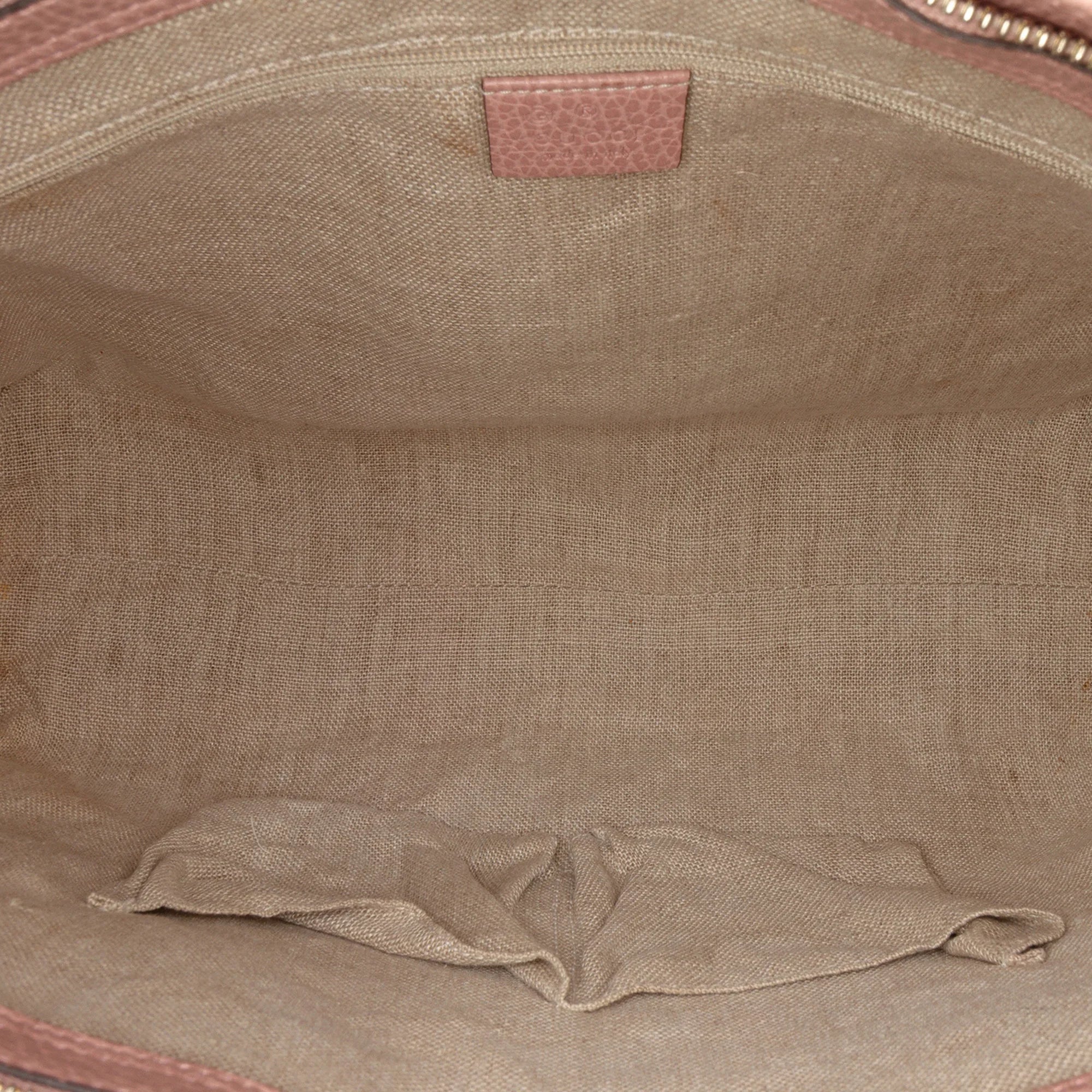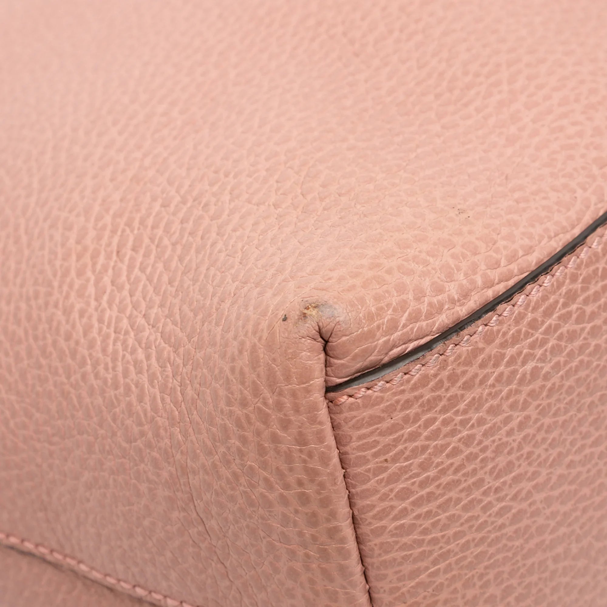 Product Details: Pink Gucci Leather Bamboo Tassel Satchel. This satchel features a leather body, flat leather handles, a detachable flat strap, a top zip closure with bamboo tassel zipper pull, and interior zip and slip pockets. 10.2" L x 14.2" W x 3.9" D, 5.9" drop. Serial number 449642 204046.