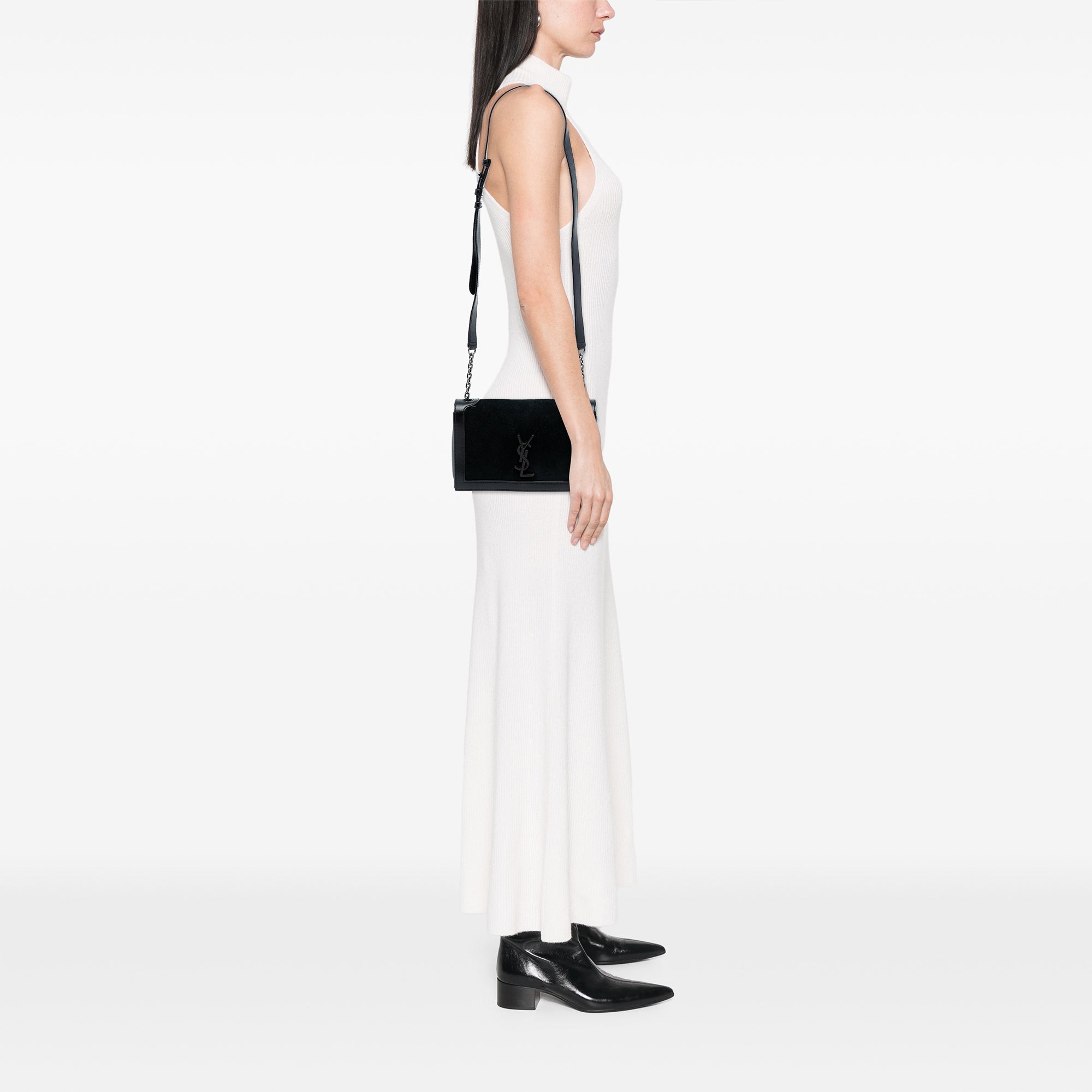Black Saint Laurent Suede Monogram Book Bag
