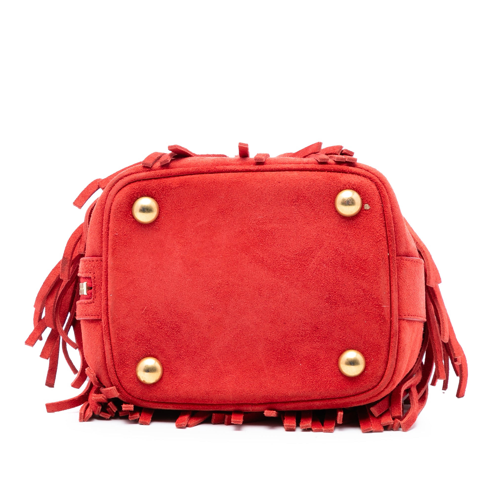 Red Saint Laurent Small Suede Emmanuelle Fringe Bucket Bag Satchel