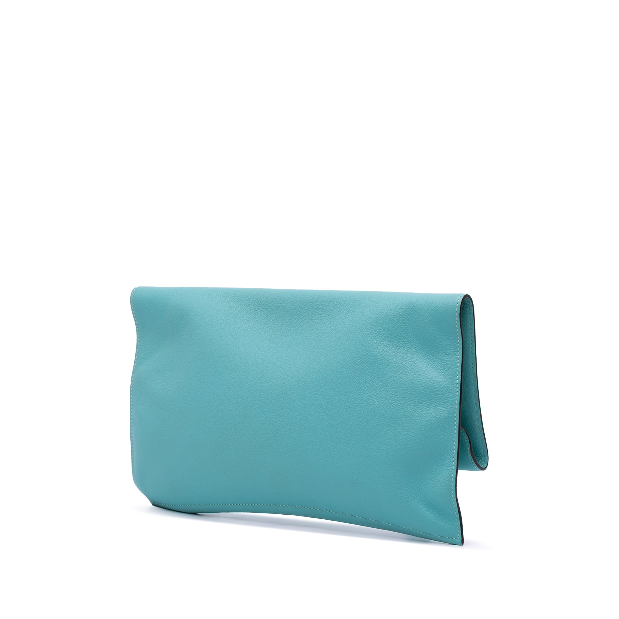 Blue Hermès Evercolor Pliplat Clutch - Designer Revival Blue Hermès Evercolor Pliplat Clutch - Designer Revival