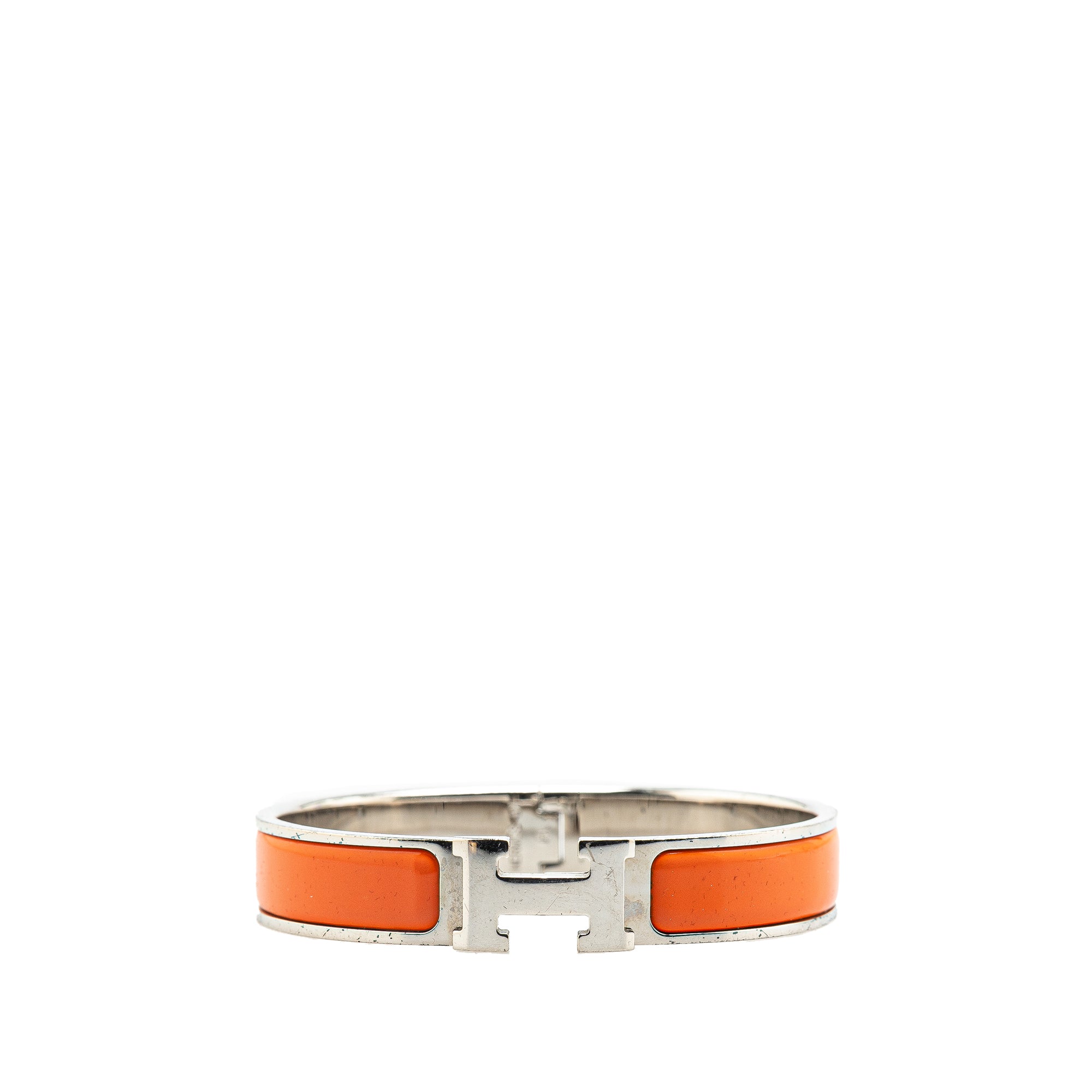 Orange Hermès Narrow Enamel Clic H Bracelet PM